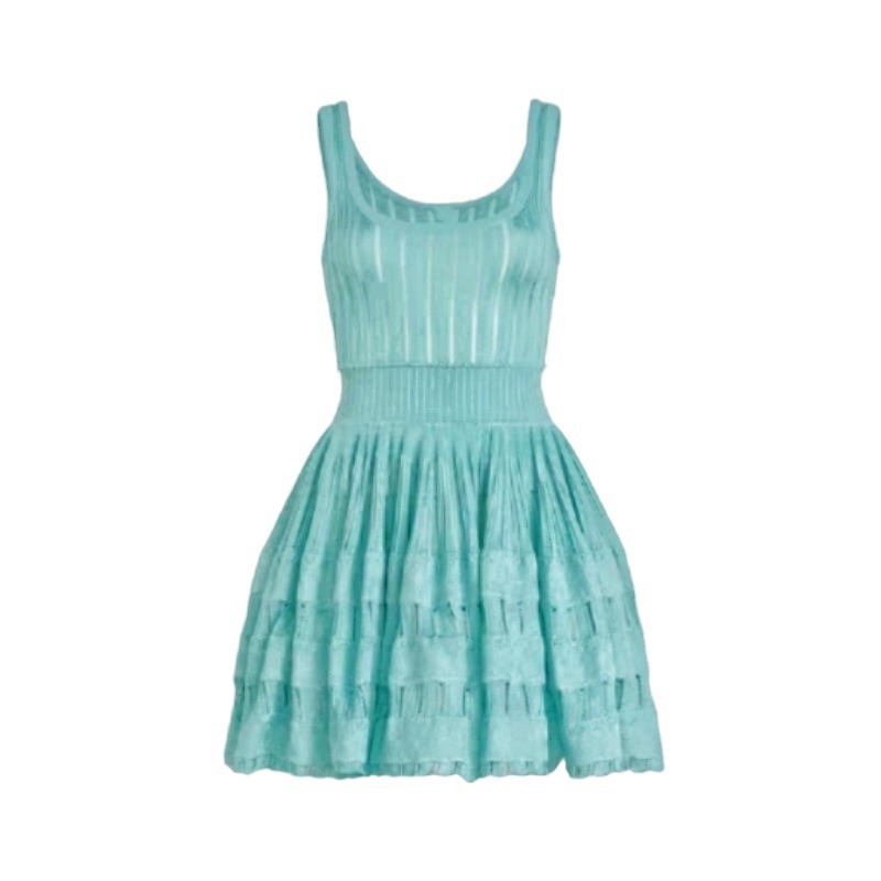 Звезда того же Гао Дин 2024 Ся Синь Мятная зеленая юбка без рукавов с полой талией трикотажное холодное платье