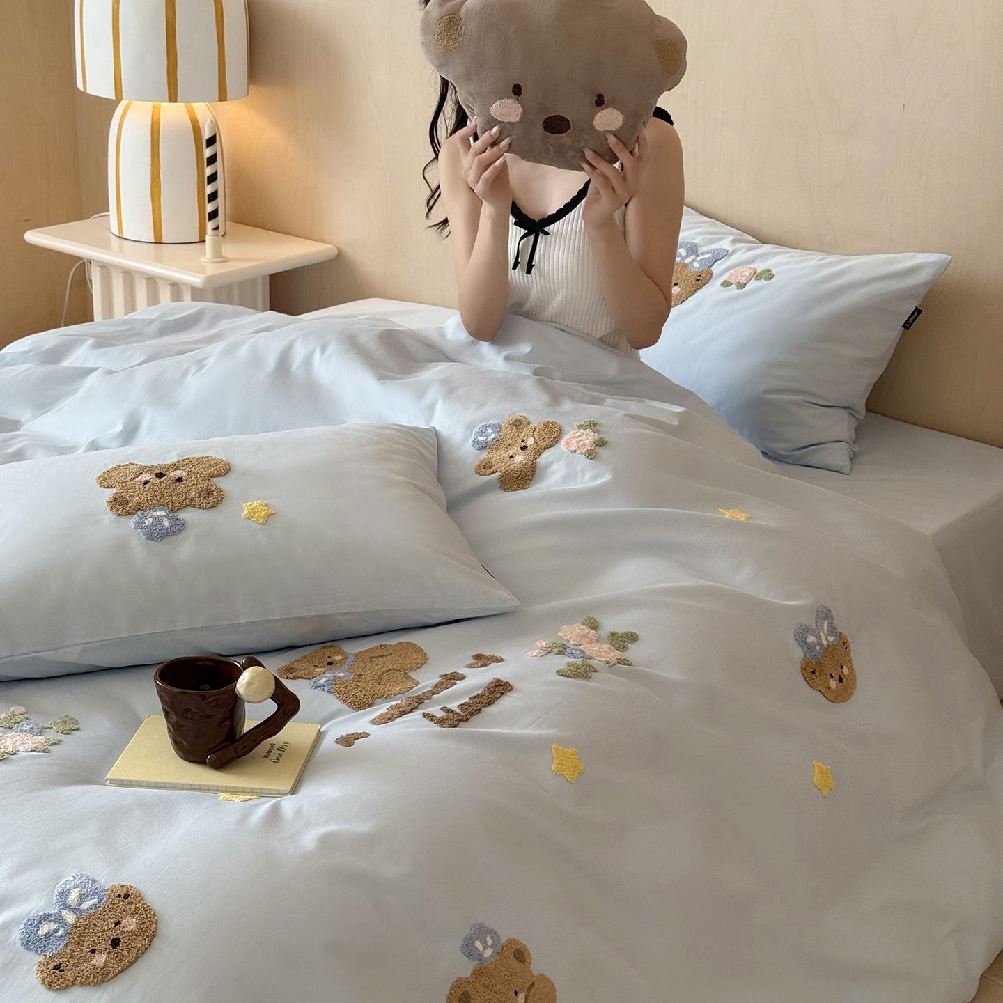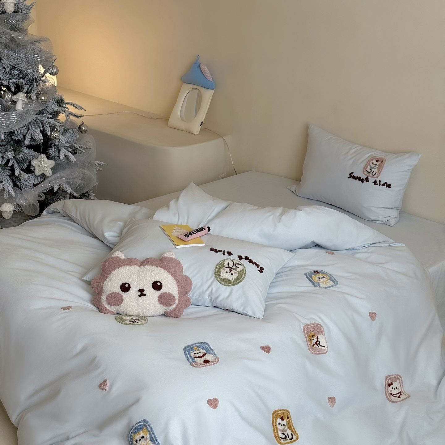 Главная страница > Комплект детского постельного белья из 4 предметов: утолщенный хлопок 100S с начесом, вышитый пододеяльник, простыня, натяжная простыня, комплект из 3 предметов