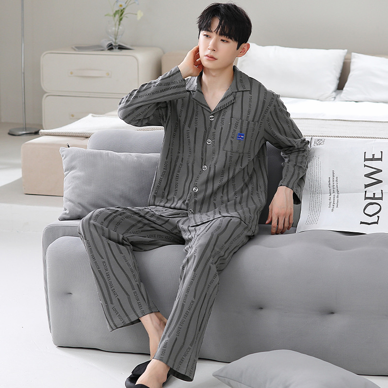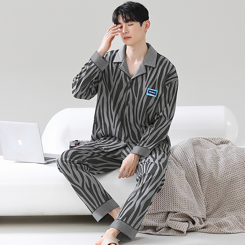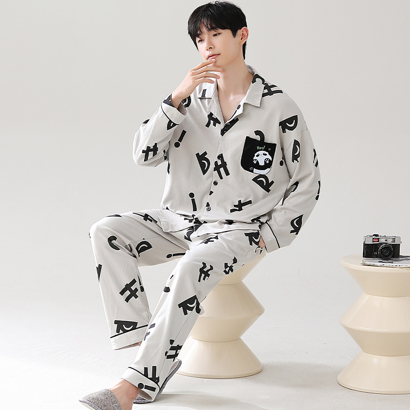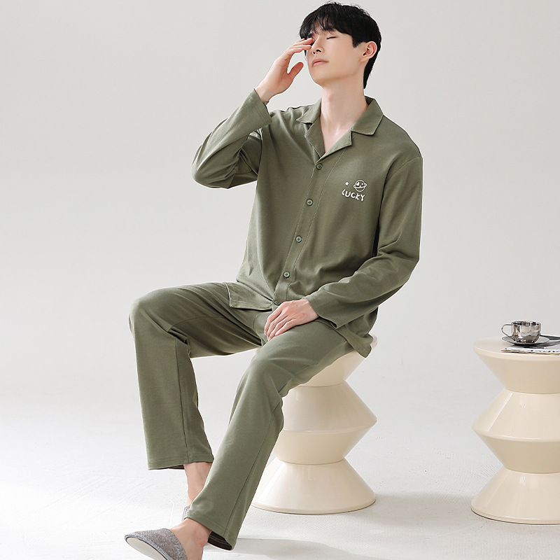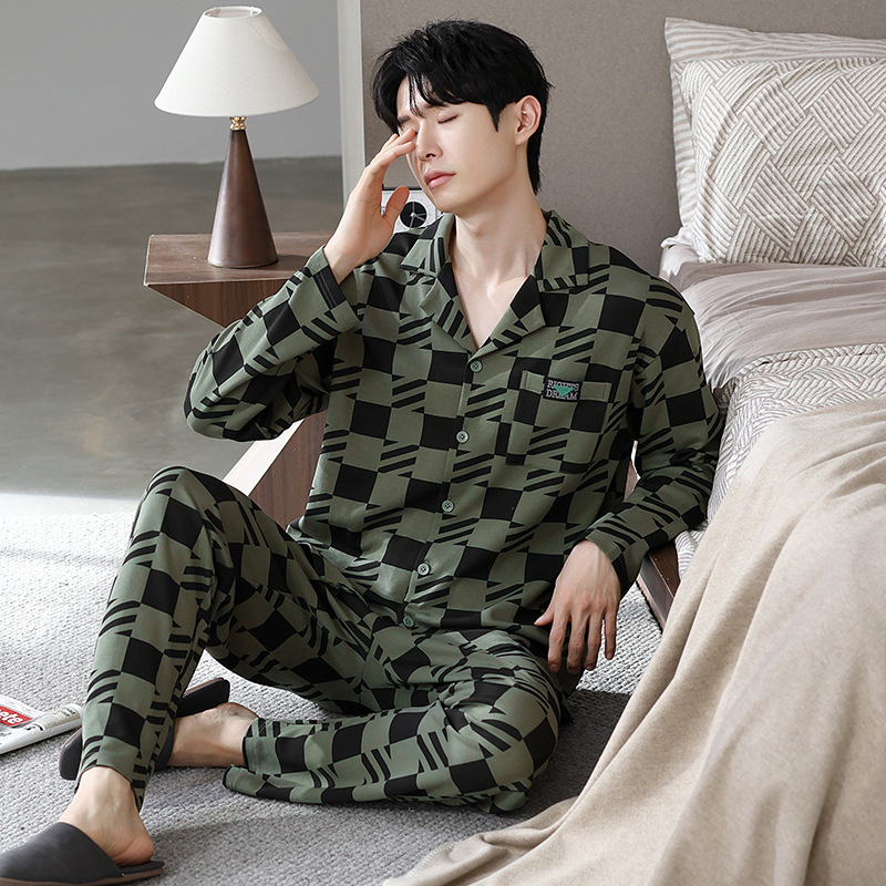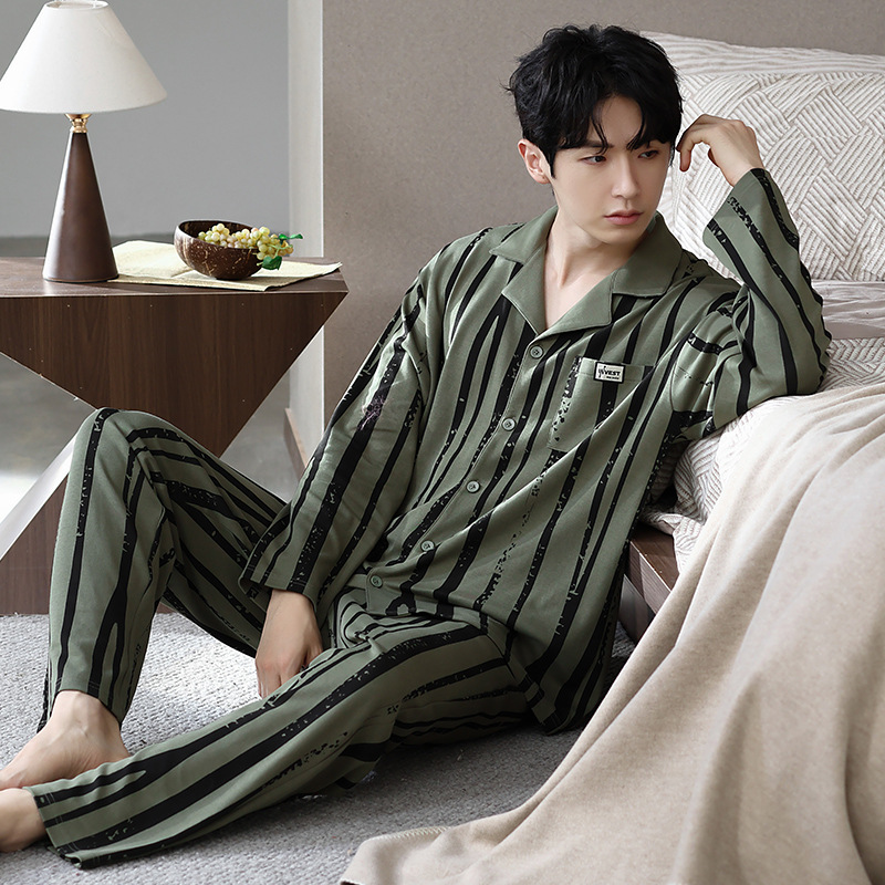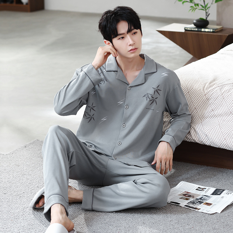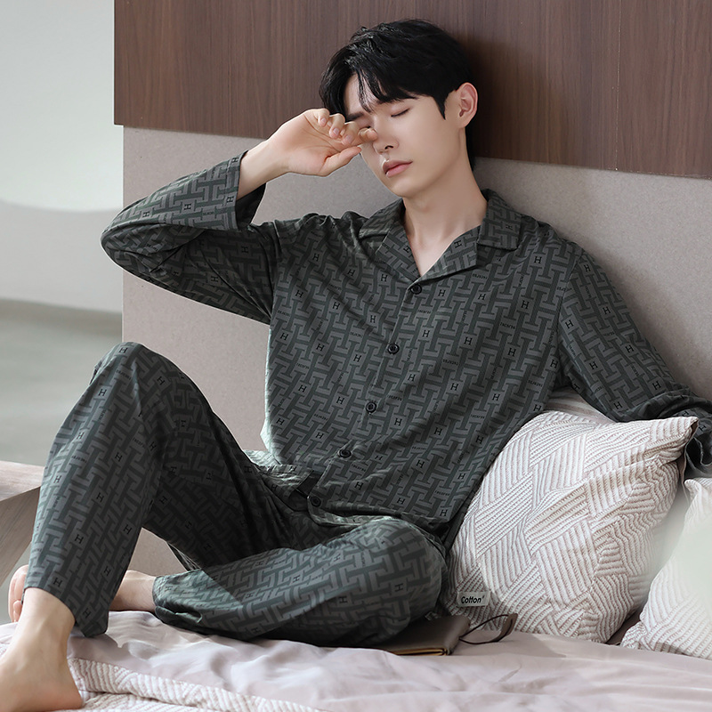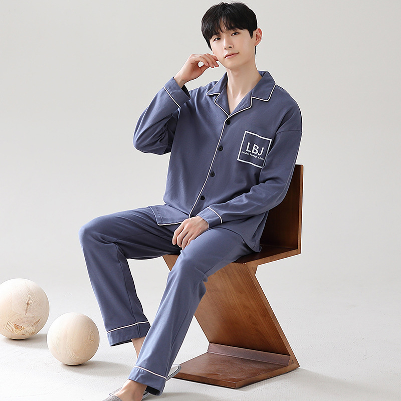 Главная страница > Мужская пижама большого размера хлопок весной и осенью новый кардиган с отворотом