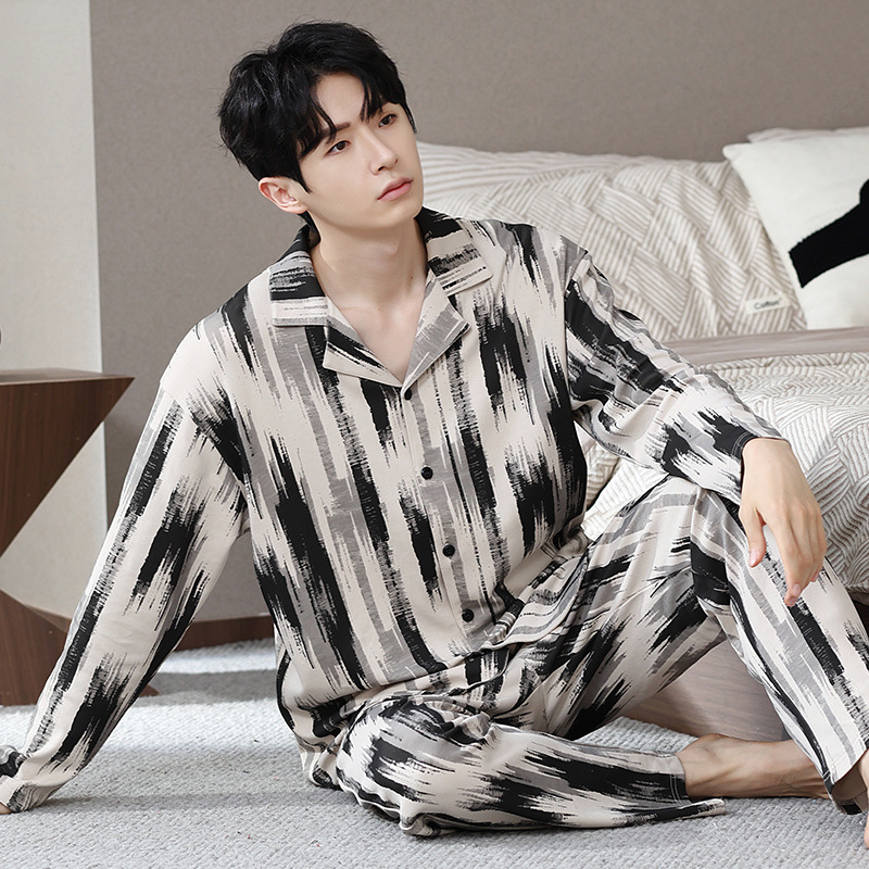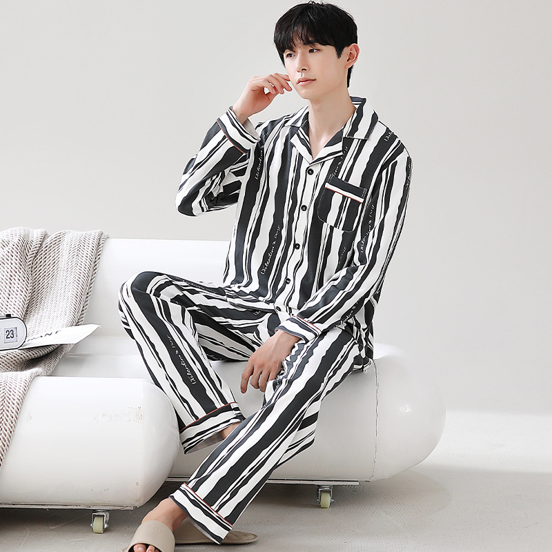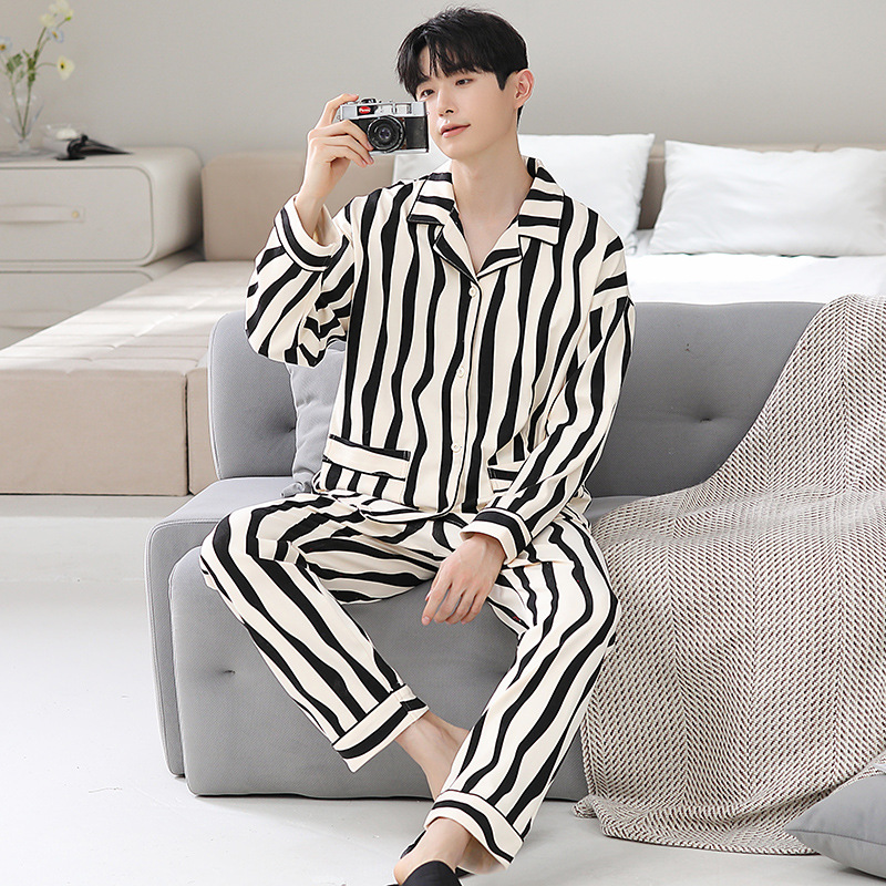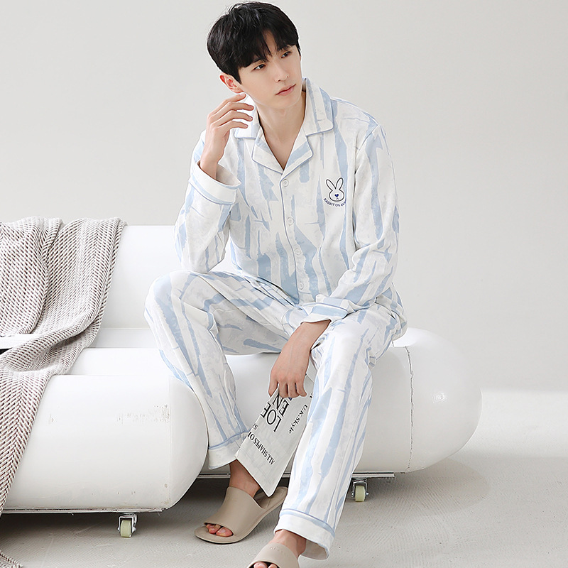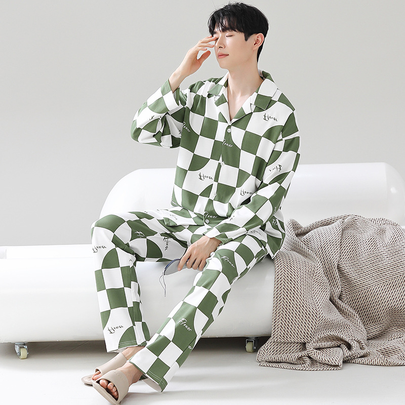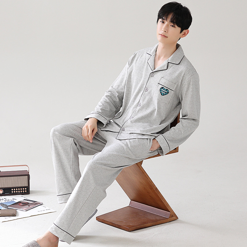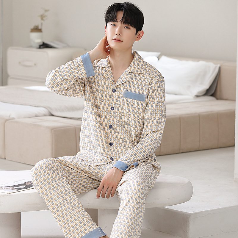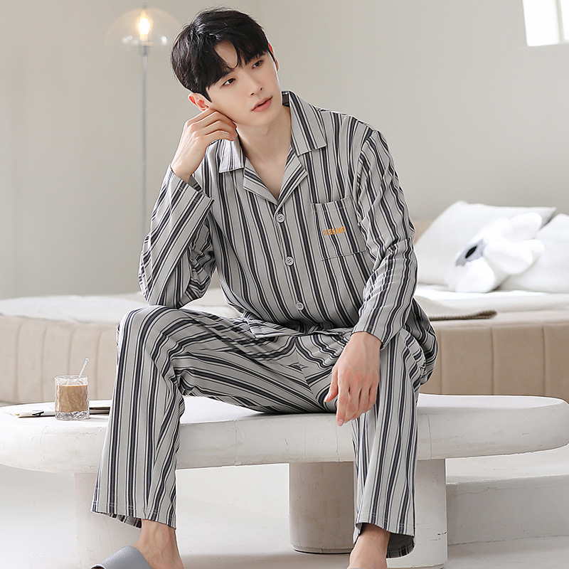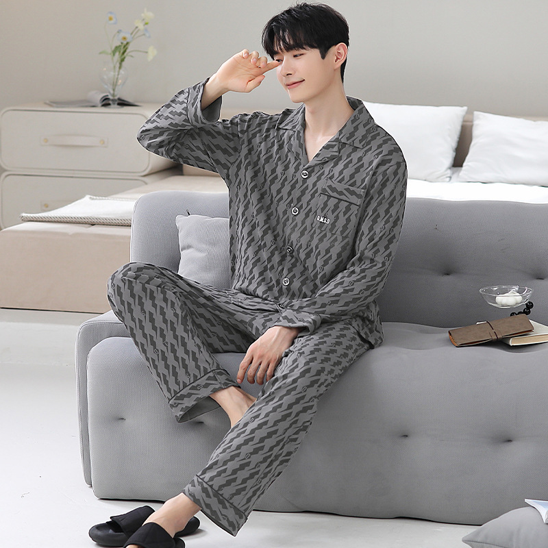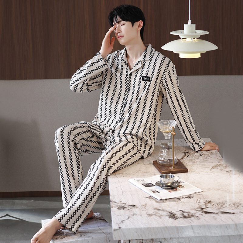 Главная страница > Мужская пижама большого размера хлопок весной и осенью новый кардиган с отворотом