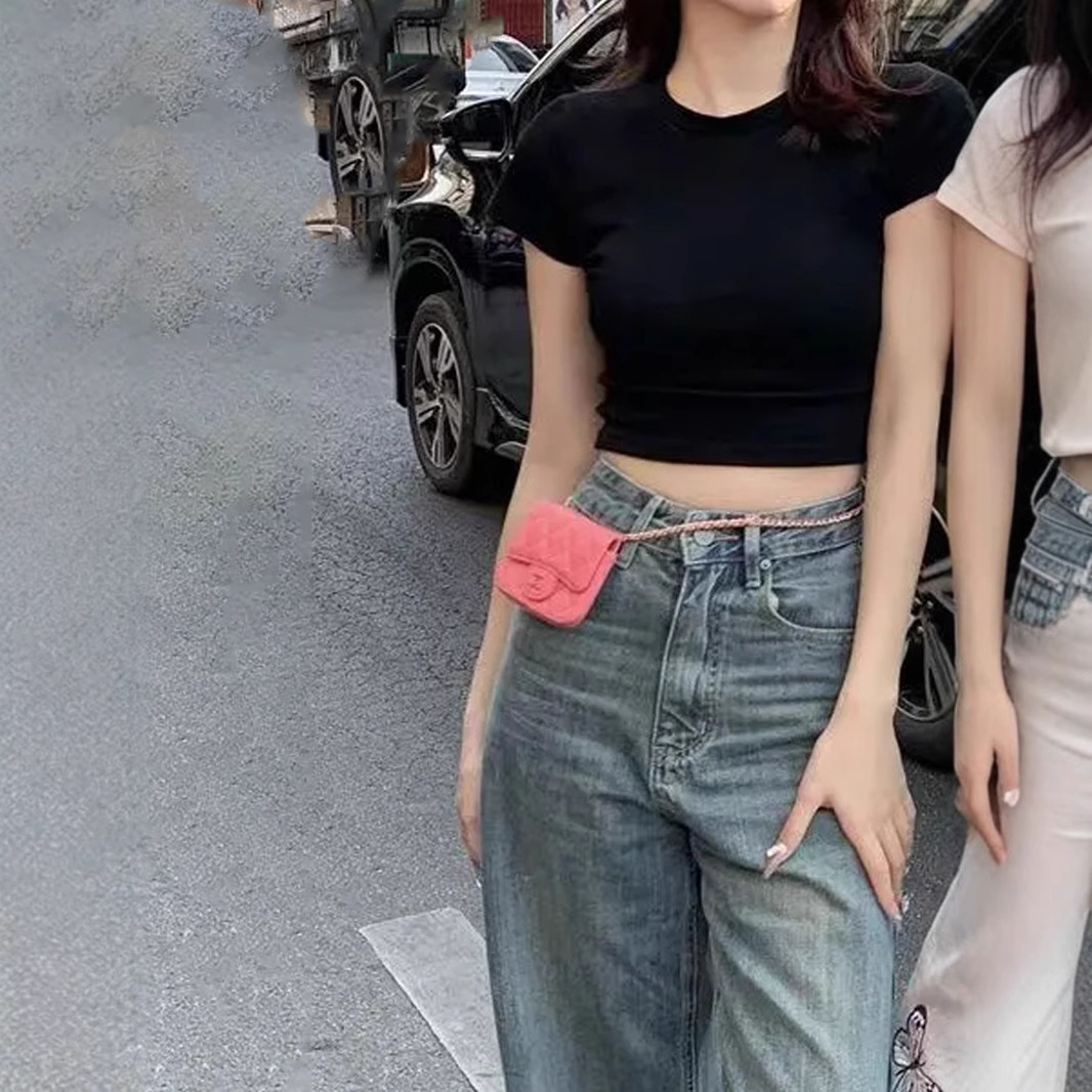 Белая футболка с открытым пупком, женская летняя футболка с короткими рукавами, новый облегающий сексуальный короткий топ с открытым пупком, однотонная нижняя рубашка
