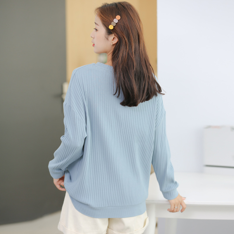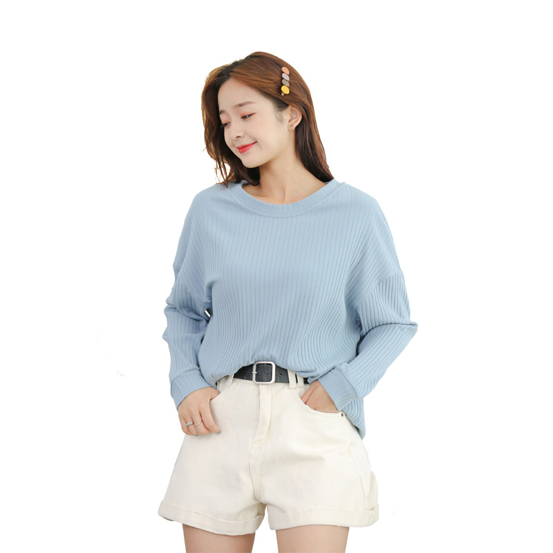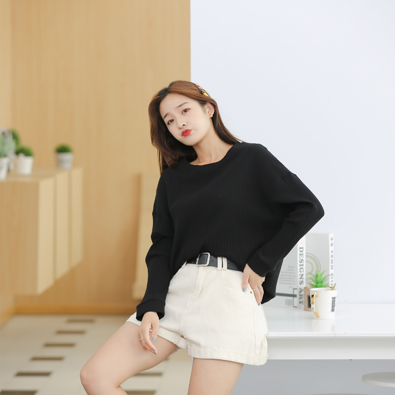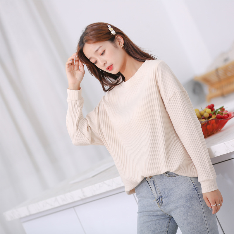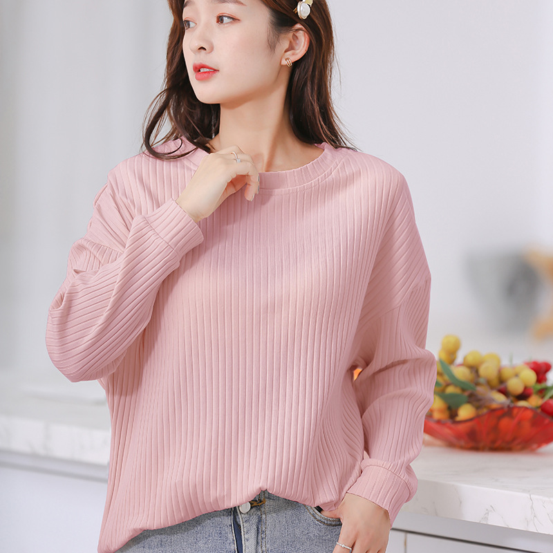 Главная страница > Новая трикотажная Базовая рубашка, Женская Осенняя чашка, цельная однотонная свободная футболка с круглым вырезом и длинными рукавами, топ с длинными рукавами для женщин