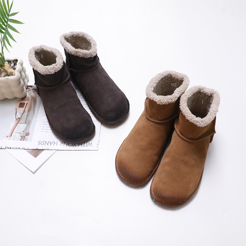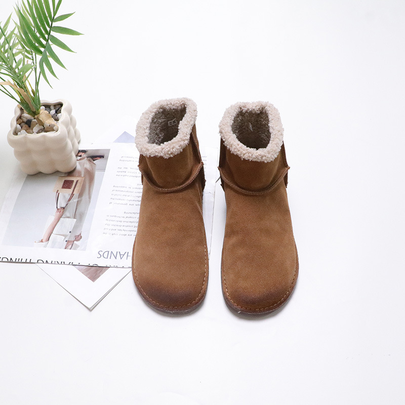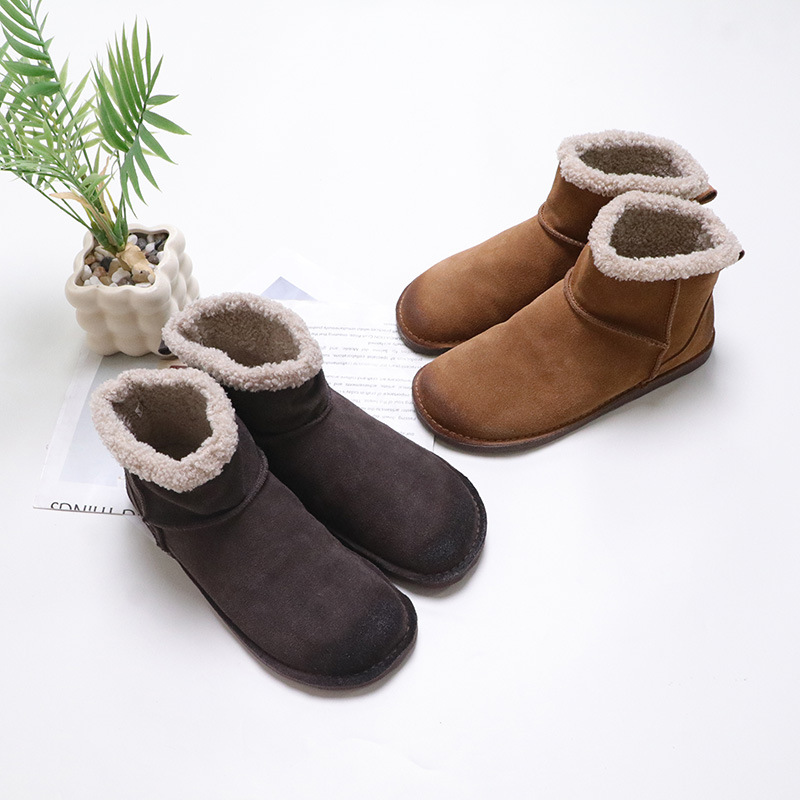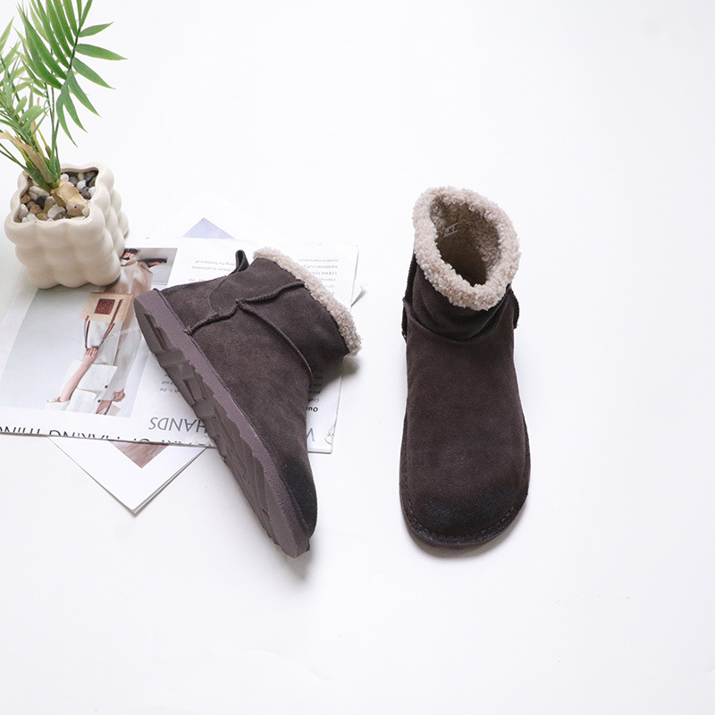 Главная страница > Новые осенние однотонные ботинки из натуральной кожи (первый слой), с круглым носком, без застежек, на хлопковой подкладке, низкие повседневные сапоги для снега 2025 года