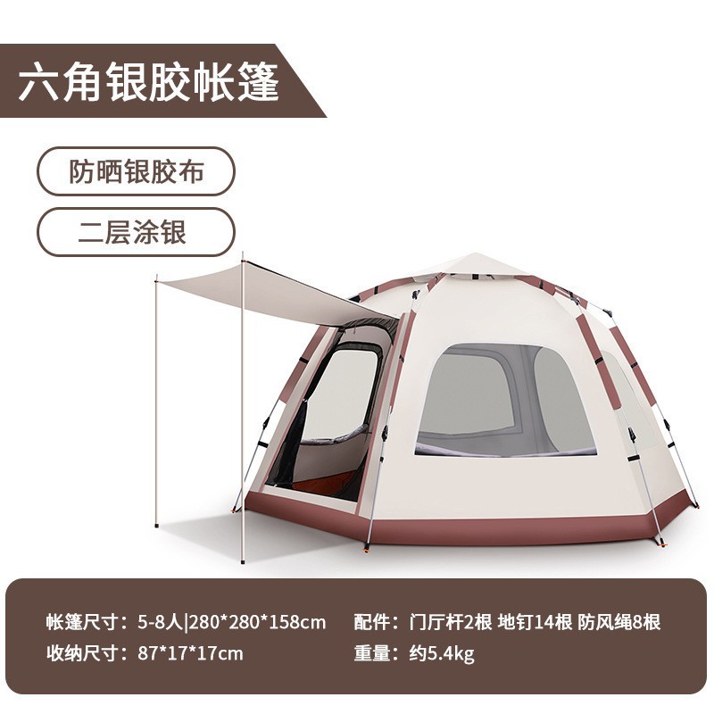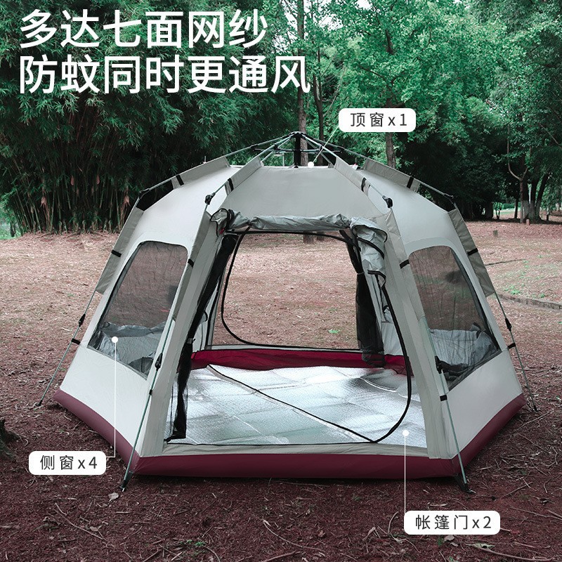 Летом кемпинг на открытом воздухе кемпинг палатка бежит белый хаки большой шестиугольный палатка двойной ветрозащитный водонепроницаемый комар