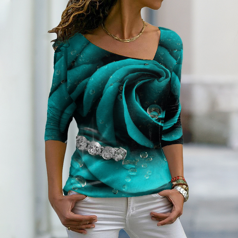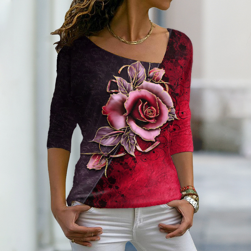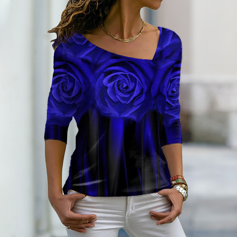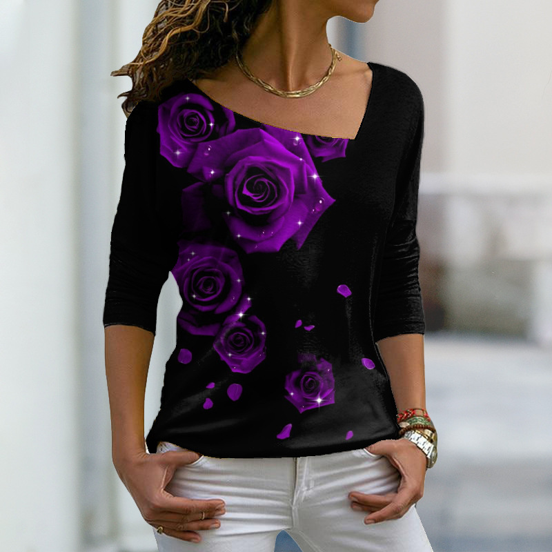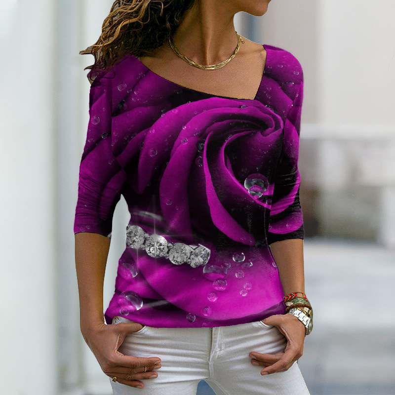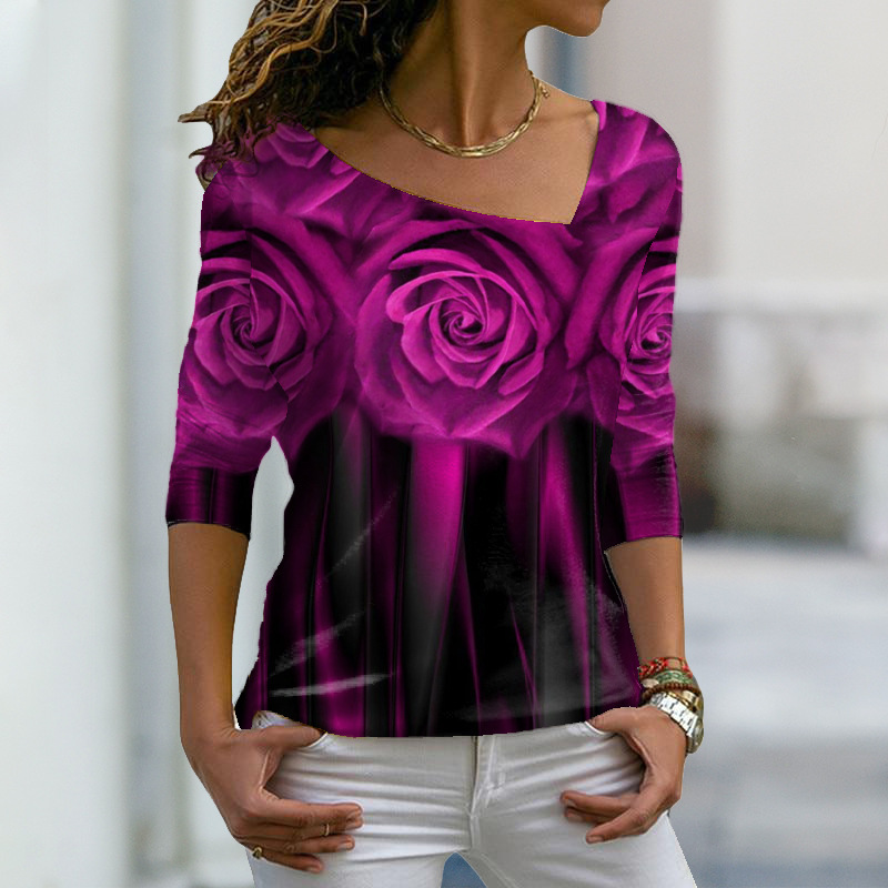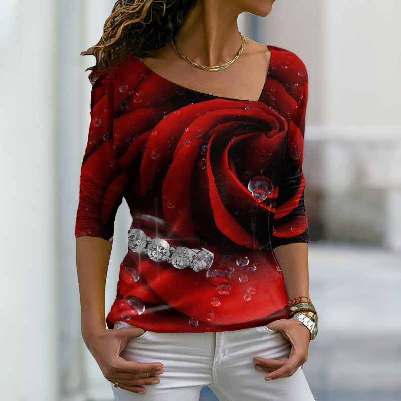 Главная страница > Поставка производителя 2024, весенне-летняя трансграничная футболка с длинными рукавами и 3D принтом розы, повседневный свободный женский топ с v-образным вырезом