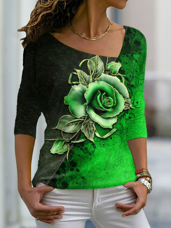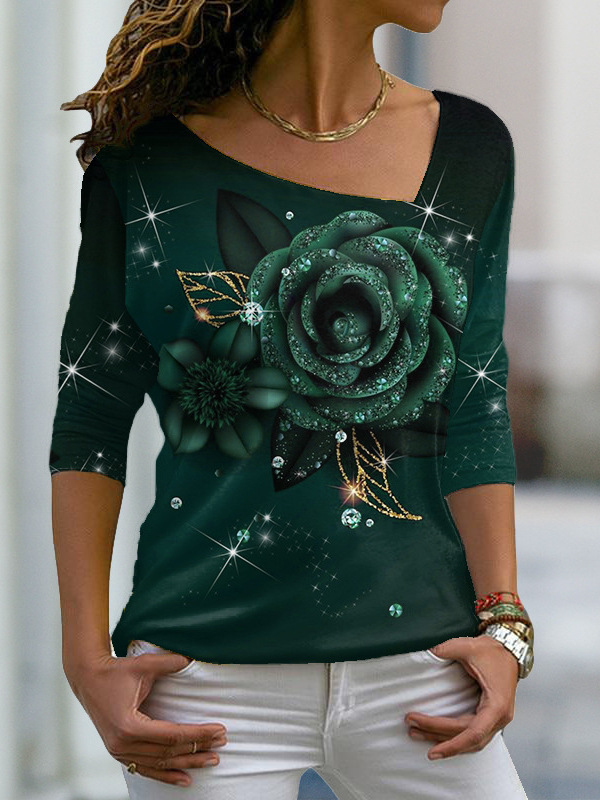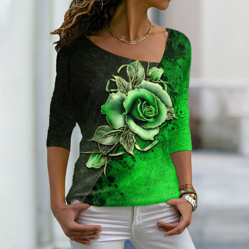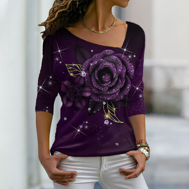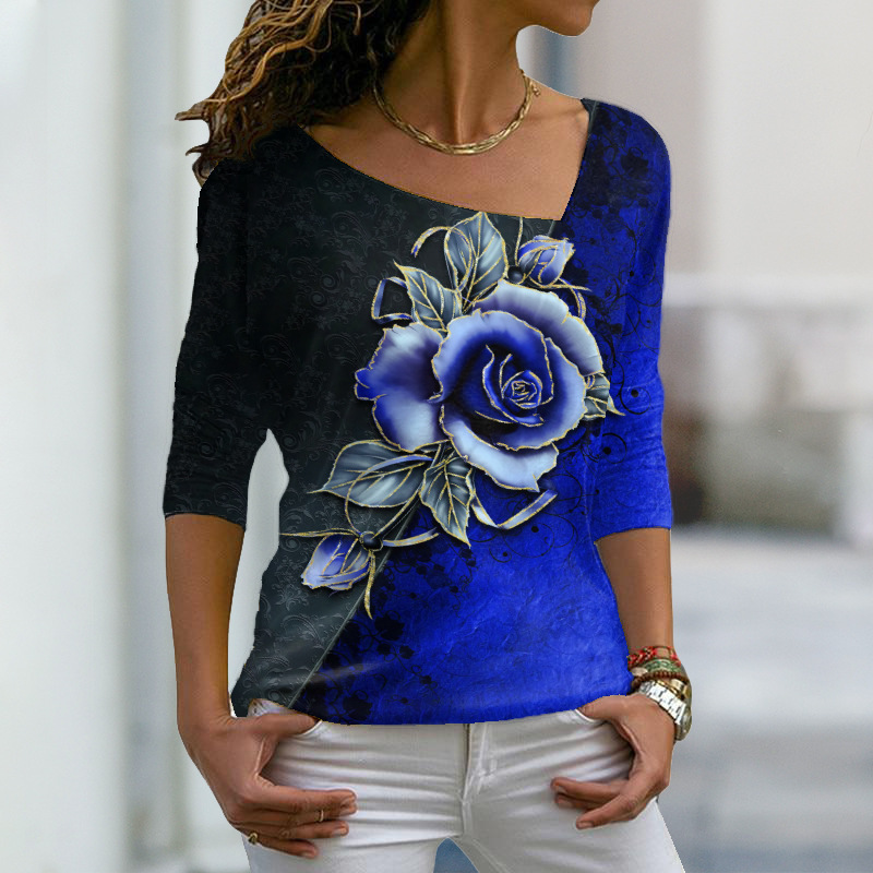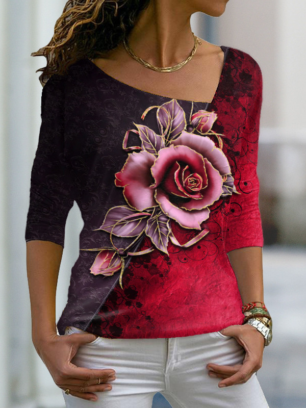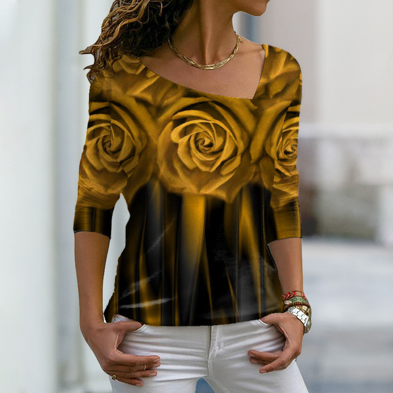 Главная страница > Поставка производителя 2024, весенне-летняя трансграничная футболка с длинными рукавами и 3D принтом розы, повседневный свободный женский топ с v-образным вырезом