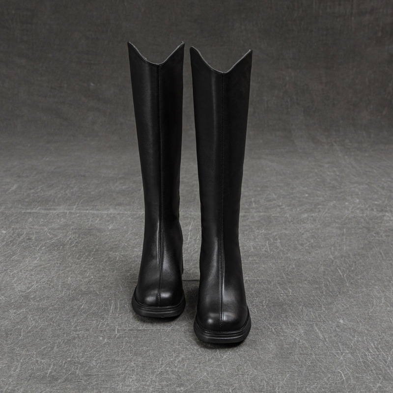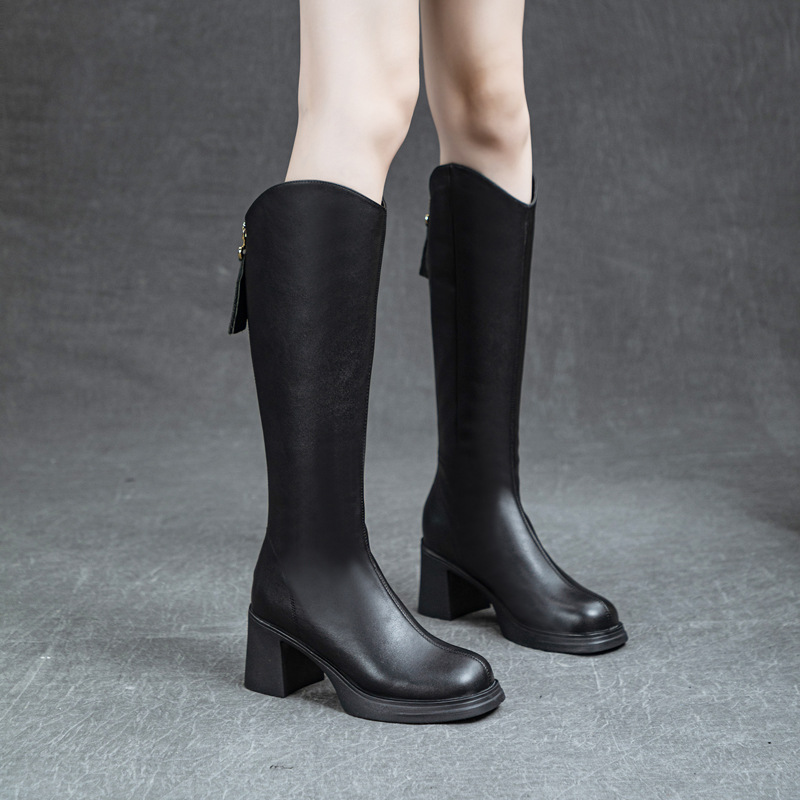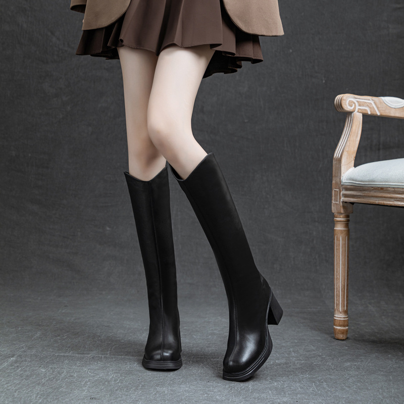 Главная страница > Элегантные высокие сапоги из натуральной кожи с высоким каблуком, новинка зимы 2024, универсальные, модные, на толстой подошве, высокие, из натуральной кожи, для верховой езды