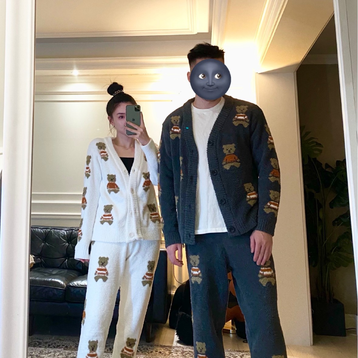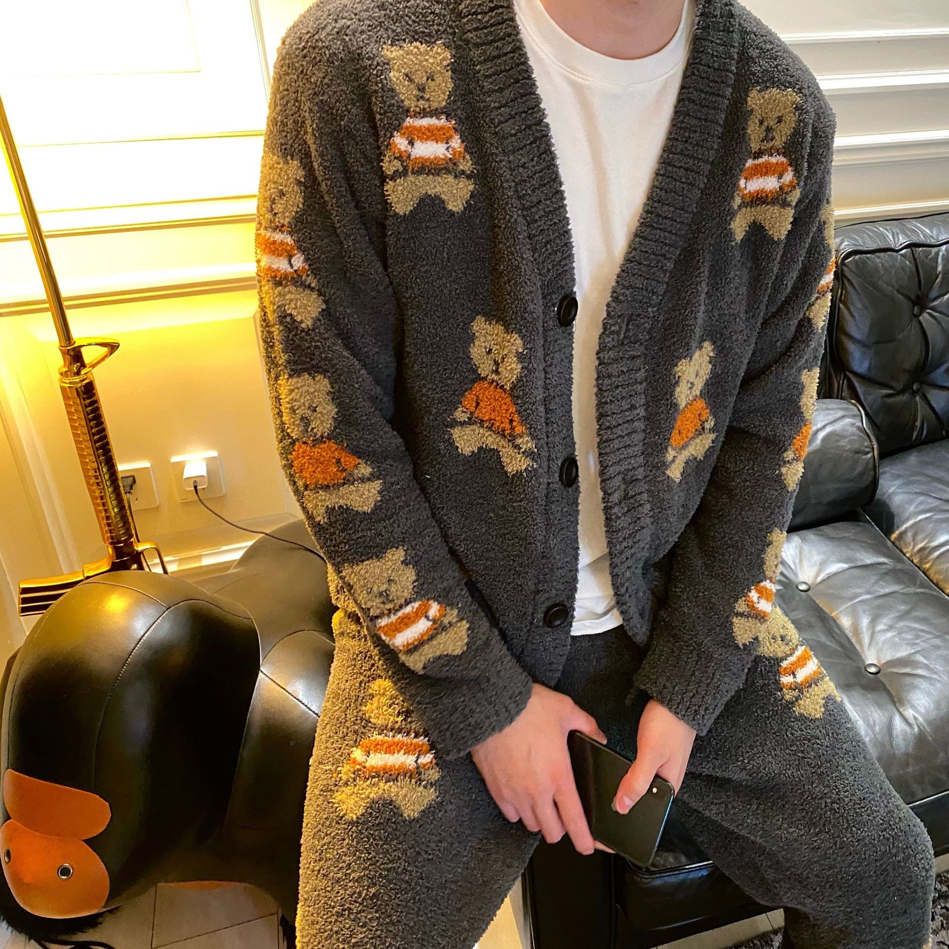 Главная страница > Осенне-Зимний новый милый мультяшный полосатый медведь, мягкая утолщенная теплая Домашняя одежда, пижамы, брюки, мужской костюм
