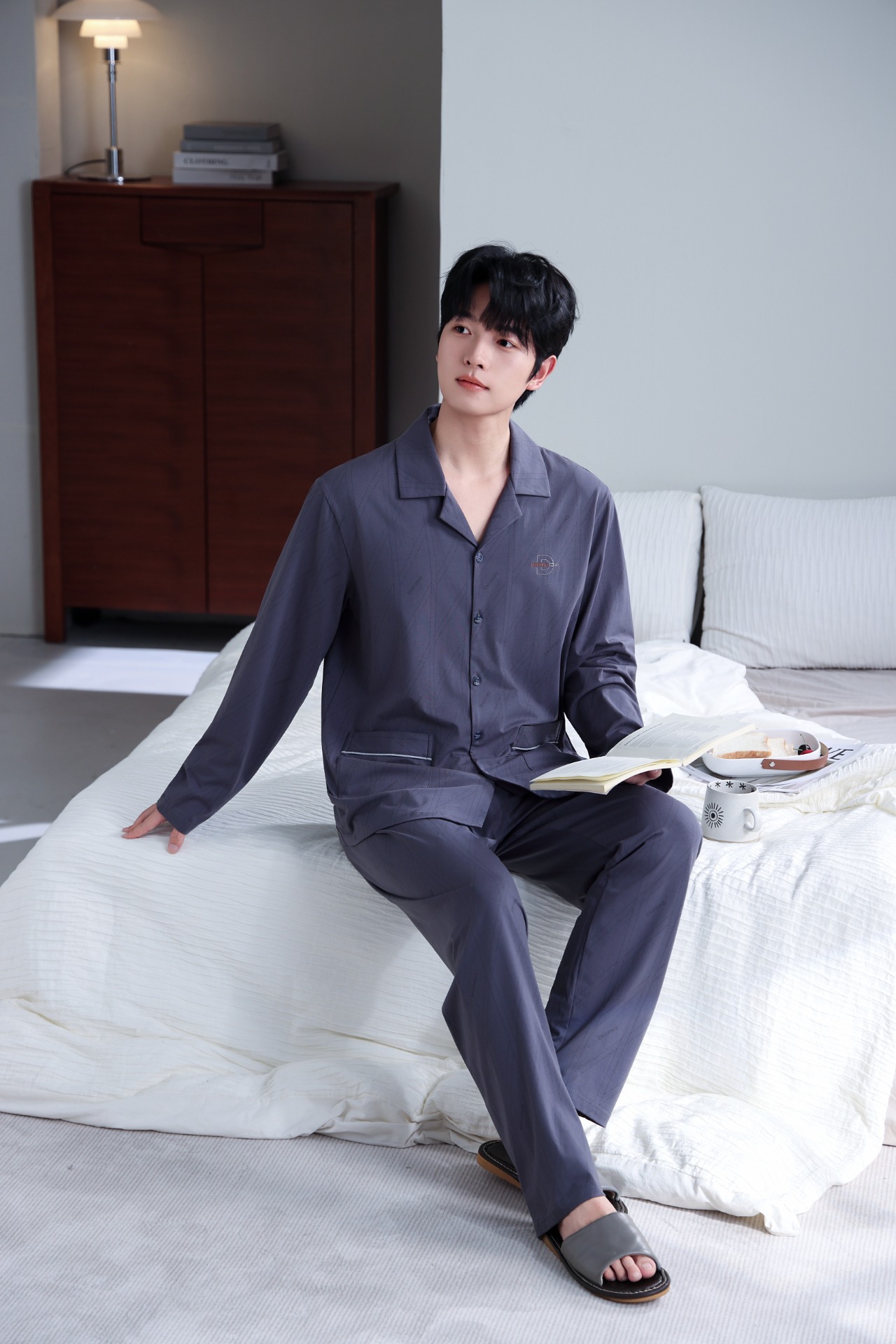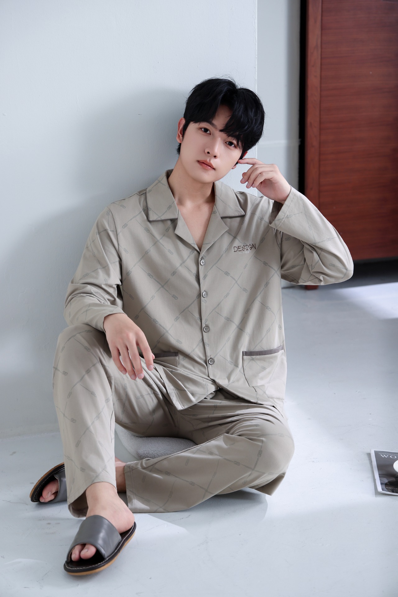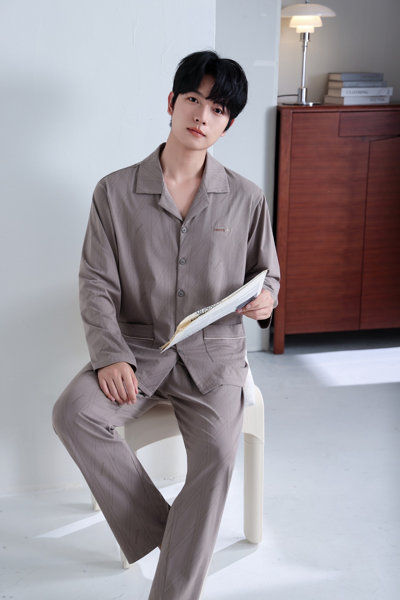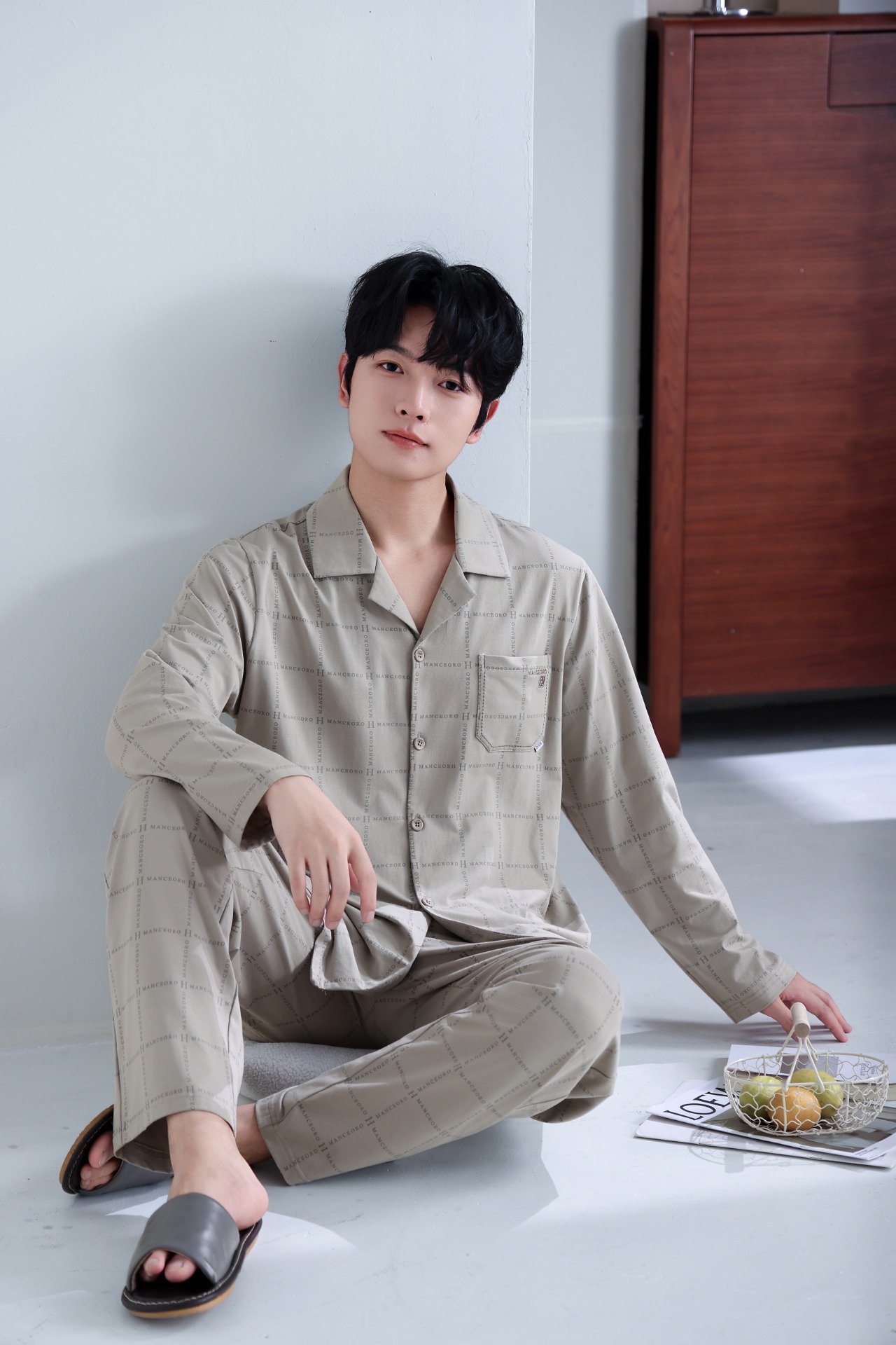 2025 Zomeini новые мужские пижамы из синьцзянского хлопка с длинными рукавами и брюками, костюм с лацканами, можно носить на улице, удобная домашняя одежда