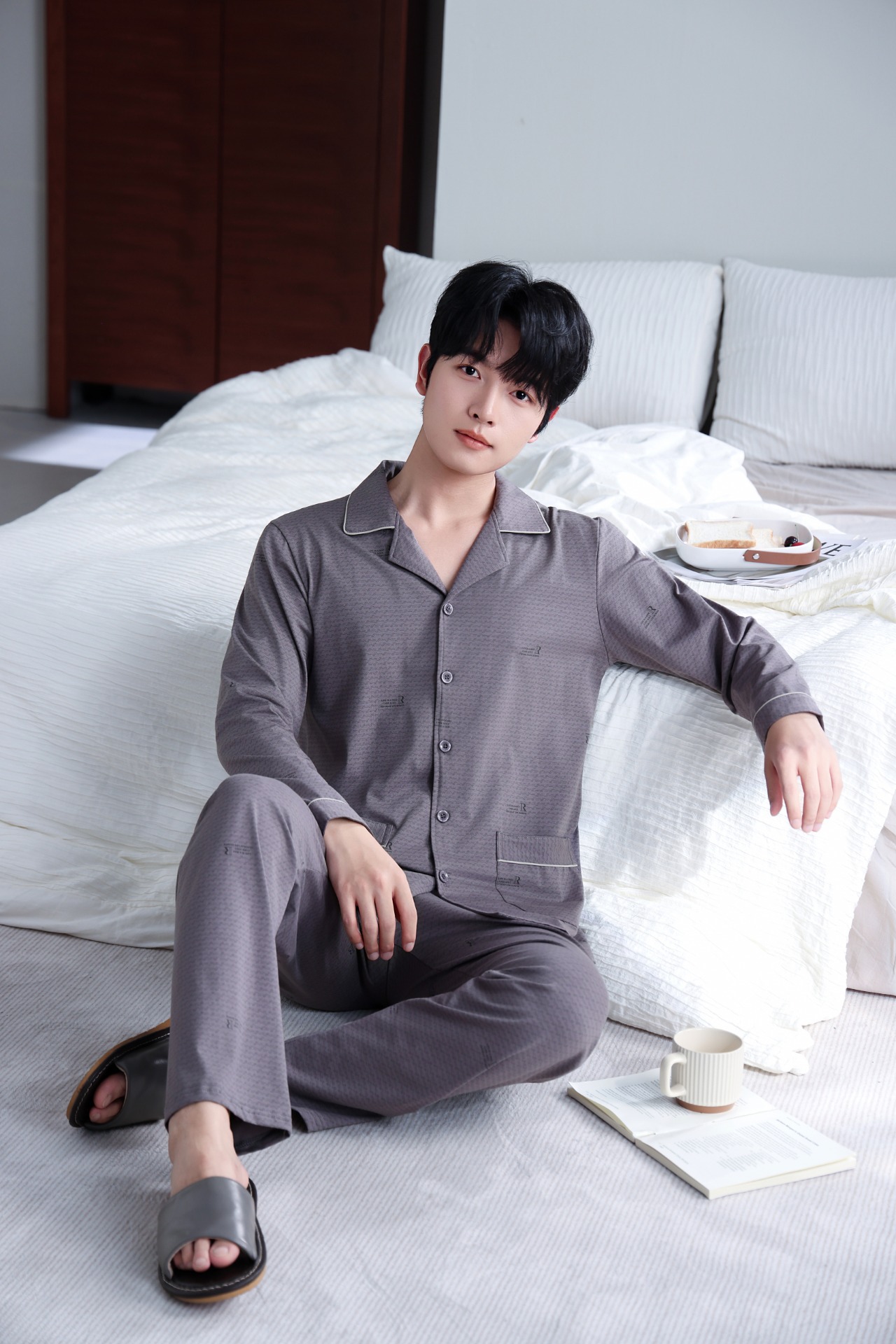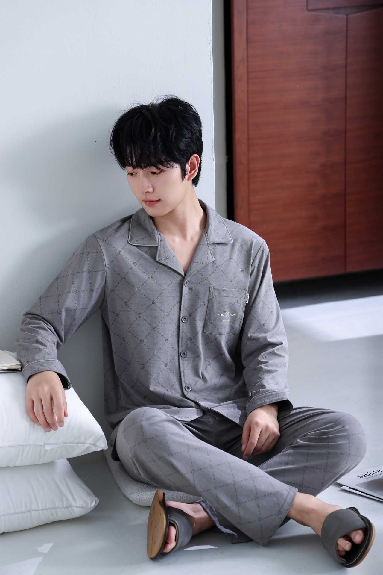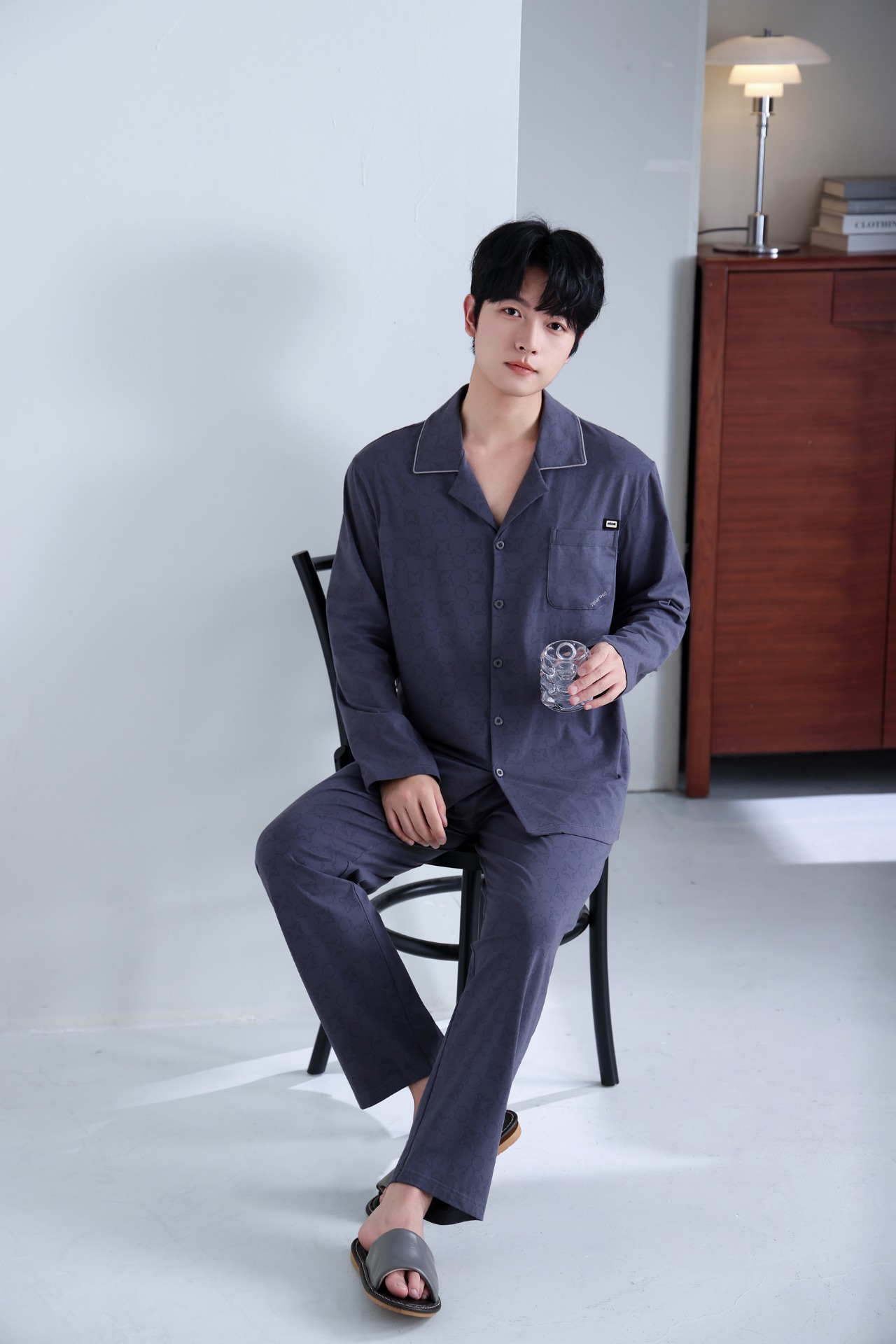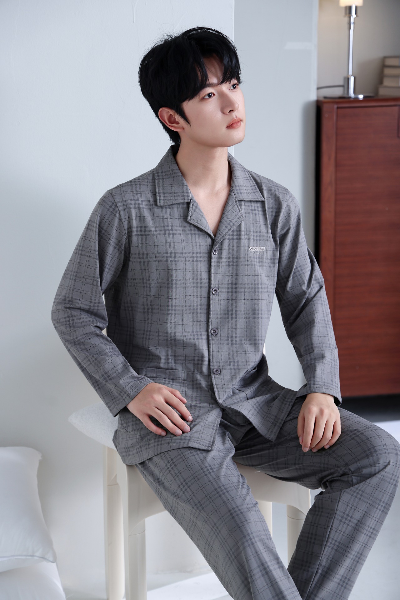 2025 Zomeini новые мужские пижамы из синьцзянского хлопка с длинными рукавами и брюками, костюм с лацканами, можно носить на улице, удобная домашняя одежда