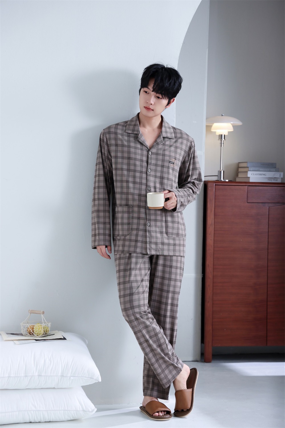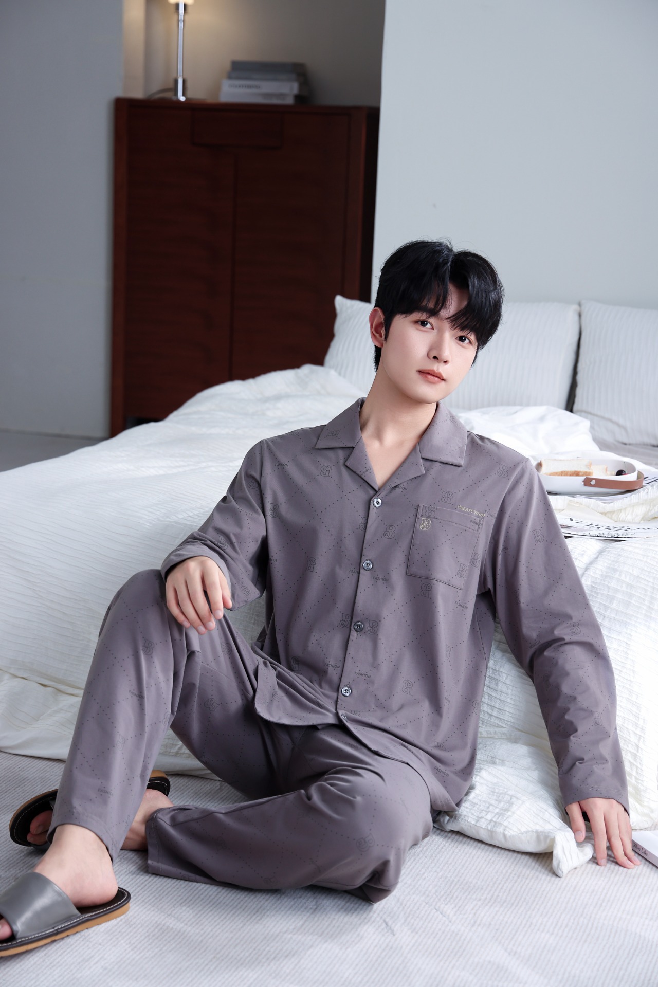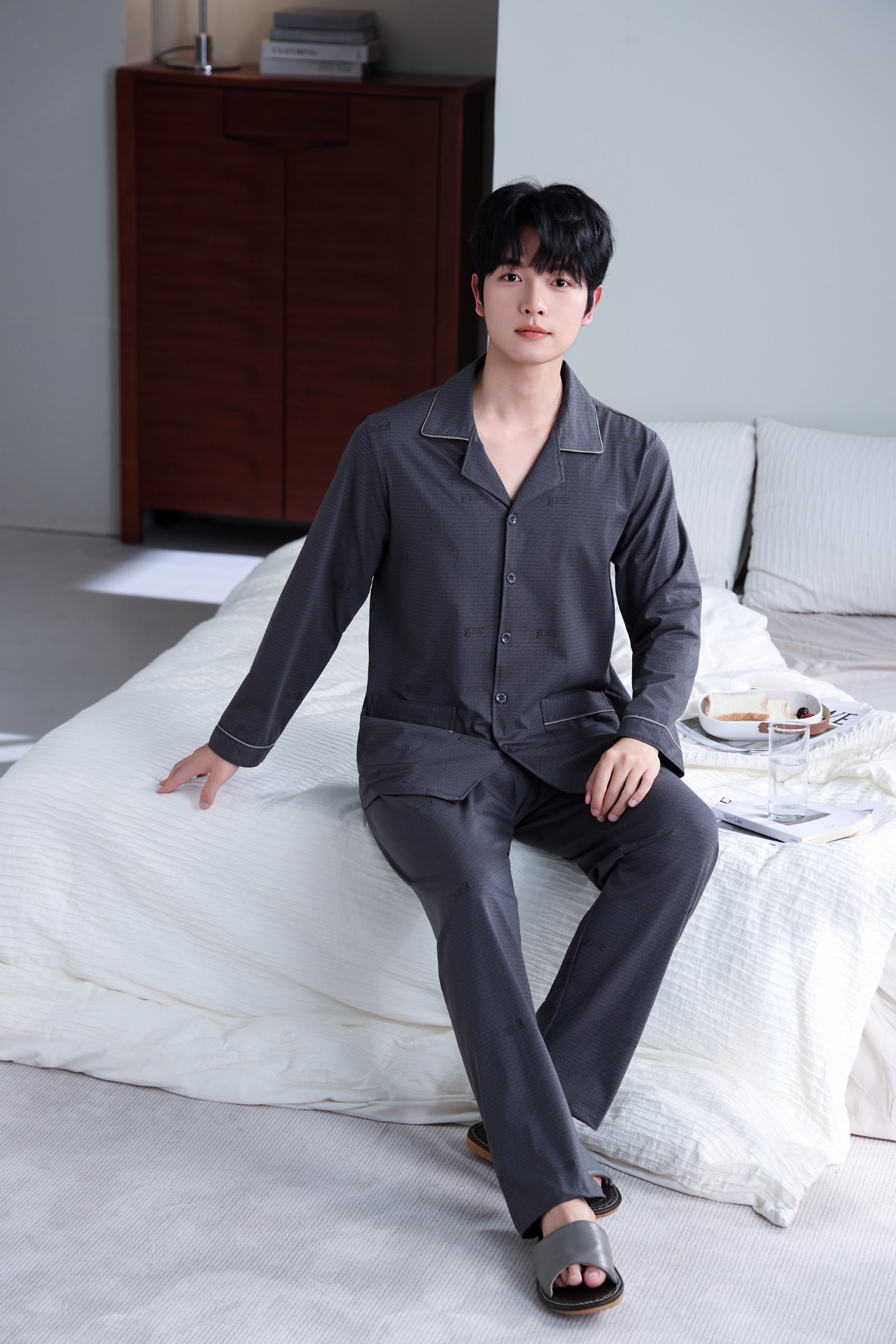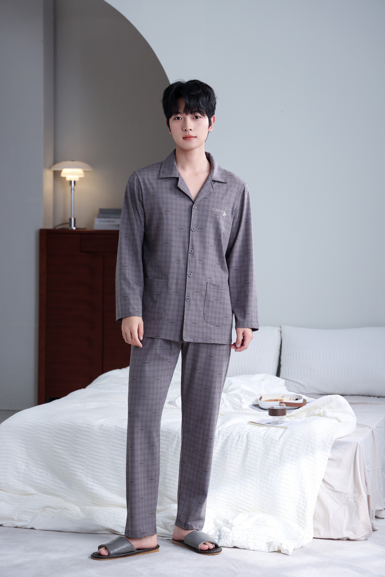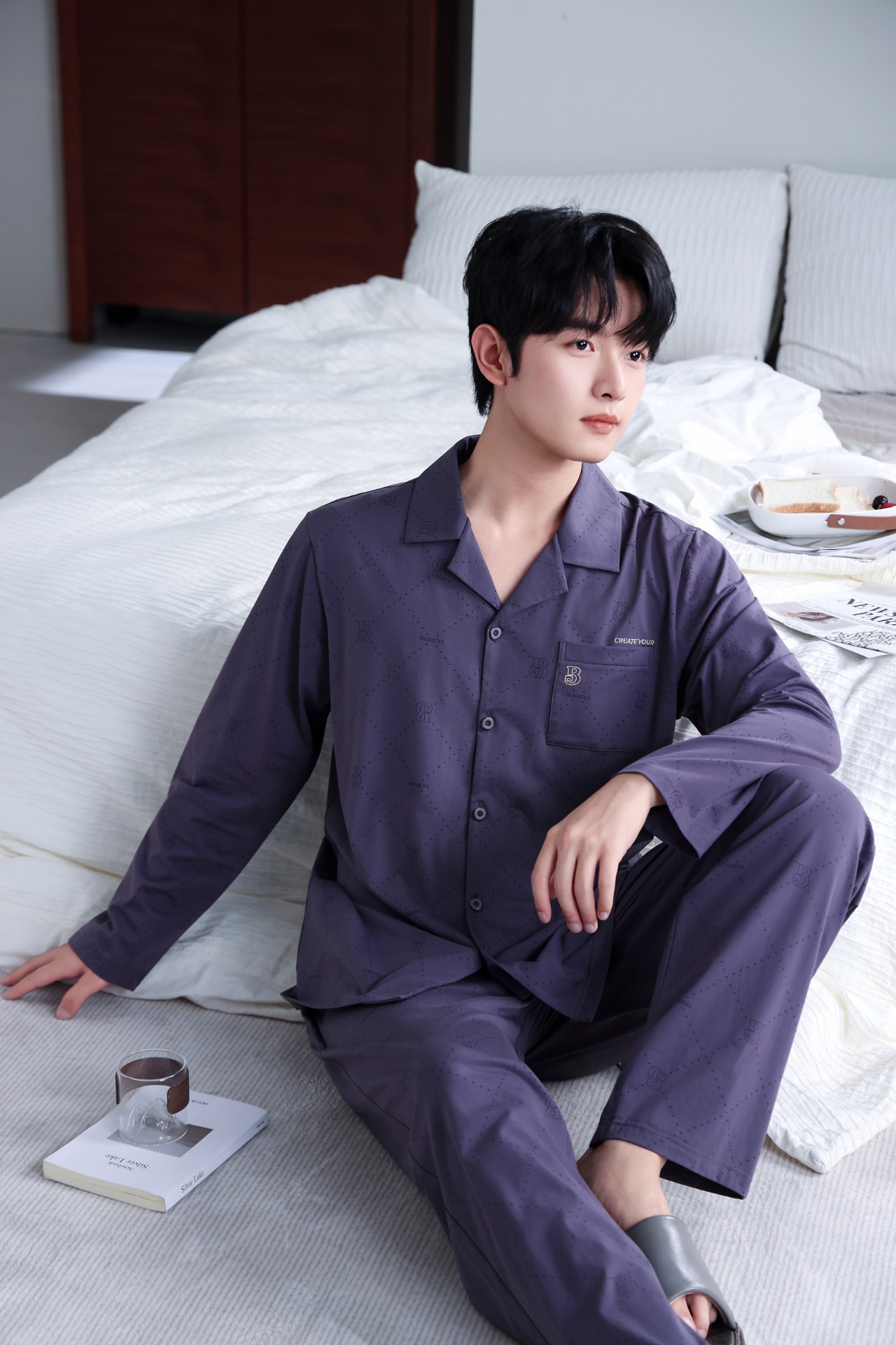 2025 Zomeini новые мужские пижамы из синьцзянского хлопка с длинными рукавами и брюками, костюм с лацканами, можно носить на улице, удобная домашняя одежда