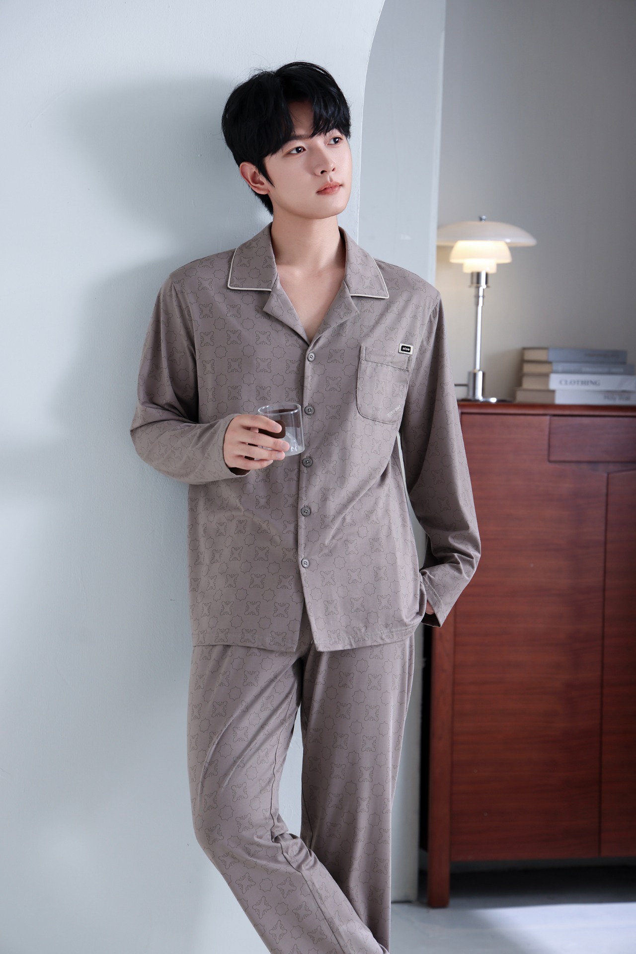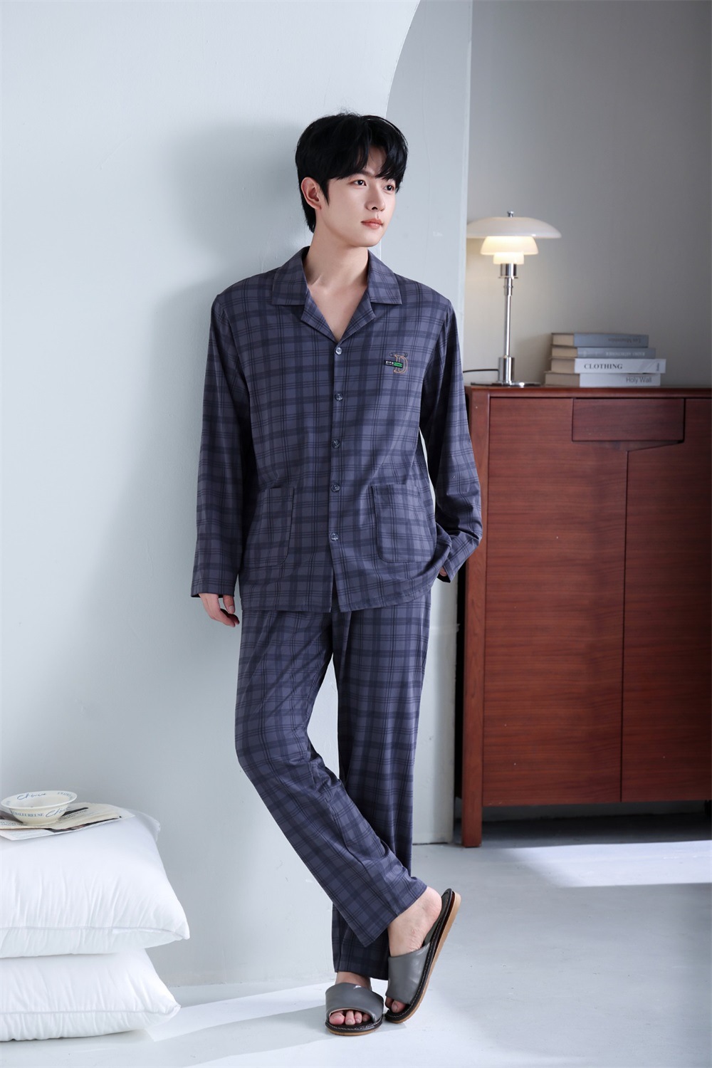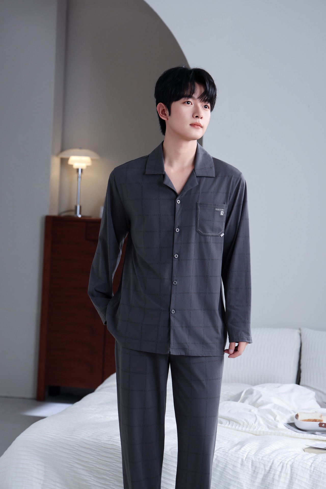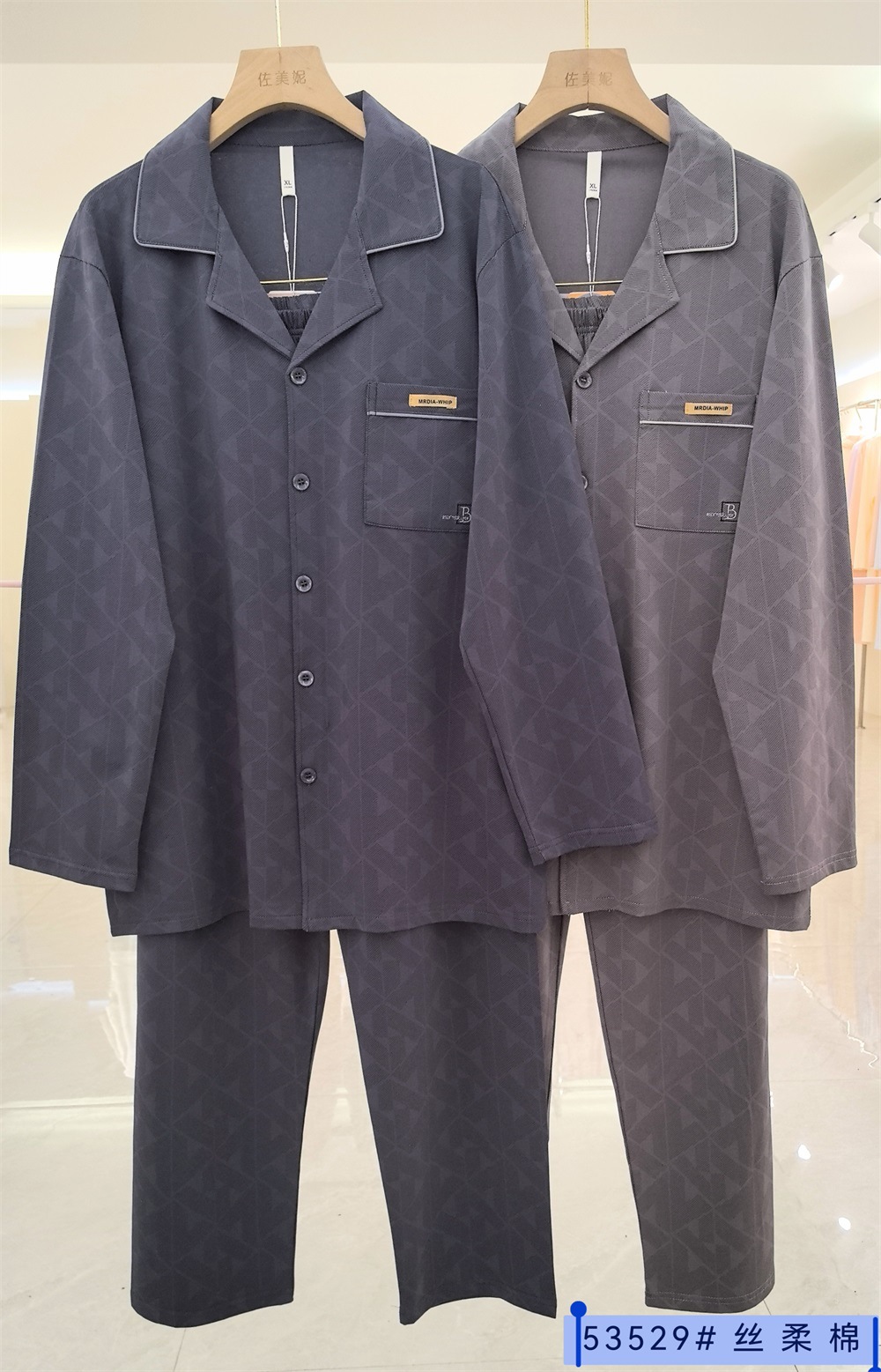 2025 Zomeini новые мужские пижамы из синьцзянского хлопка с длинными рукавами и брюками, костюм с лацканами, можно носить на улице, удобная домашняя одежда