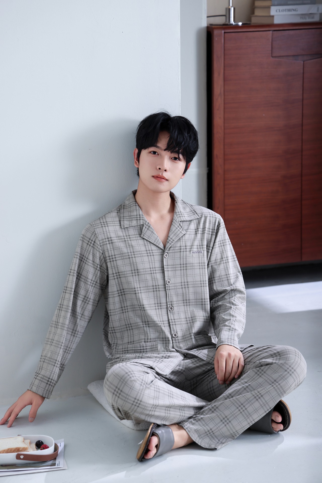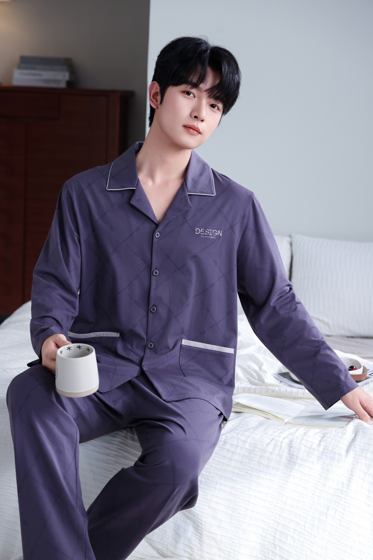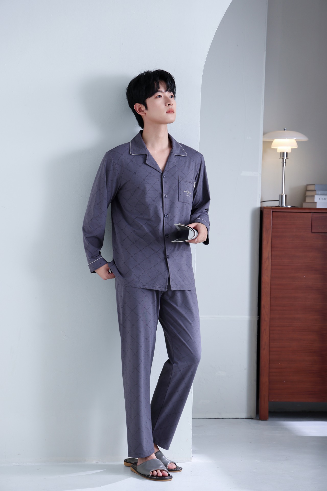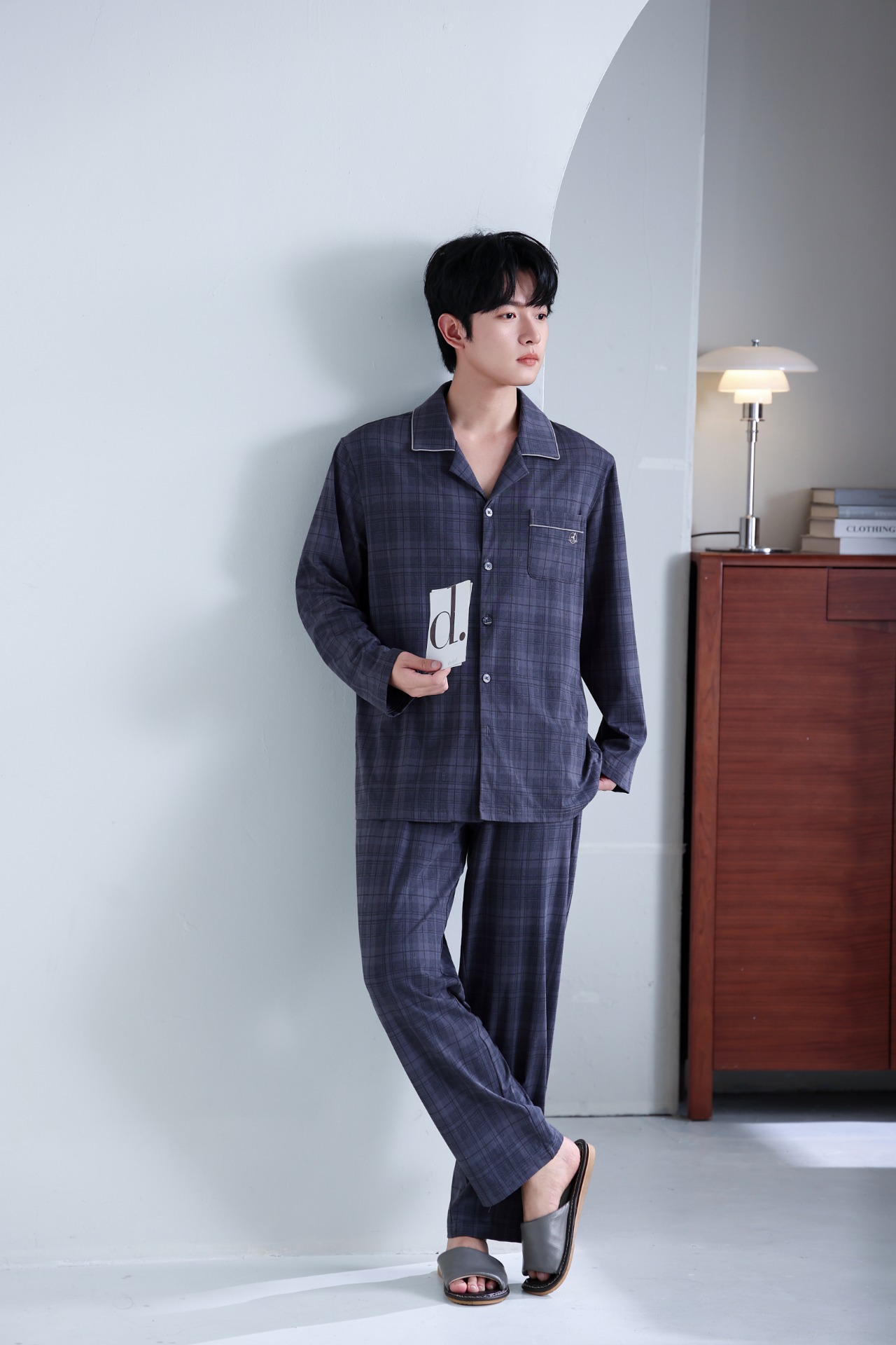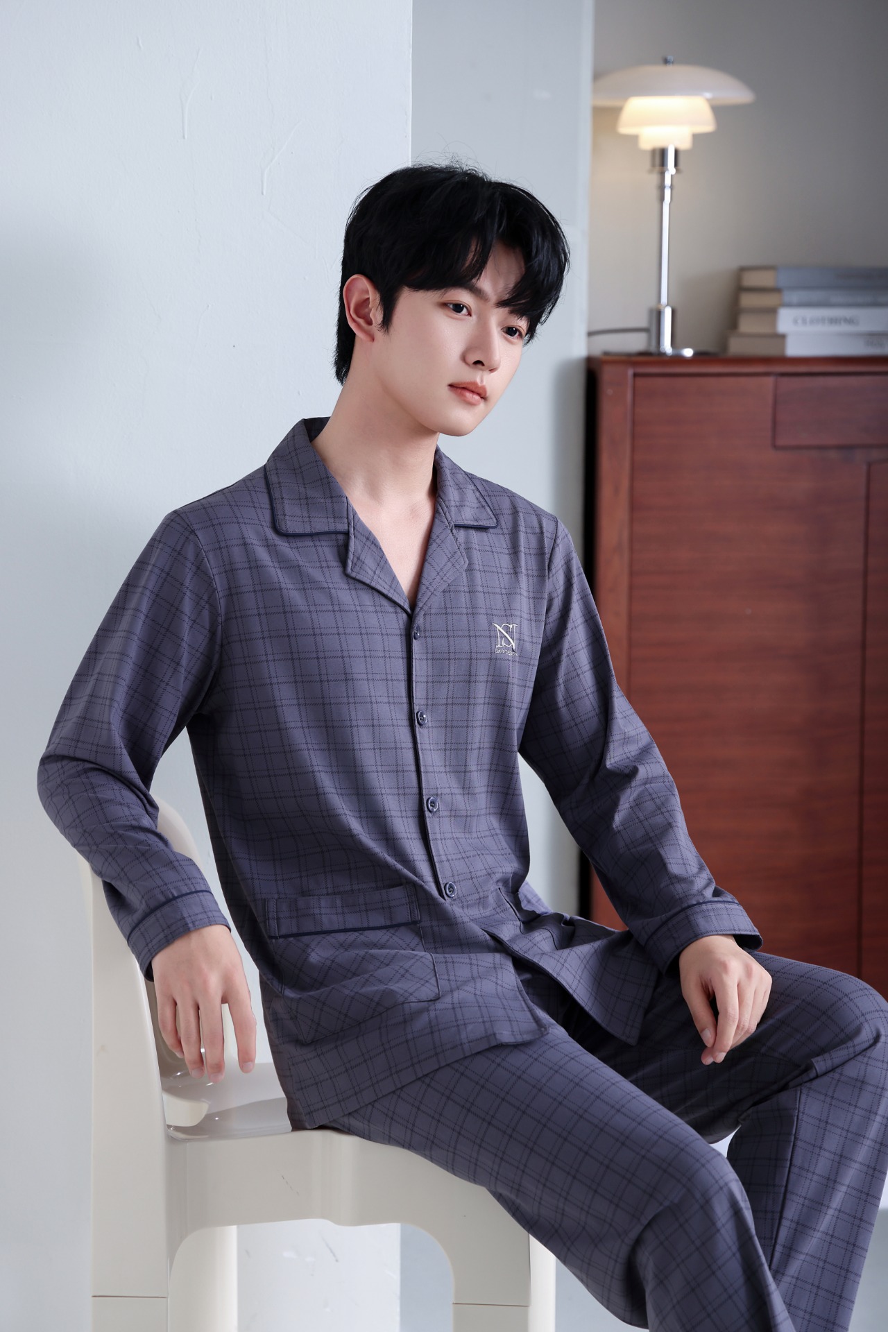 Главная страница > 2025 Zomeini новые мужские пижамы из синьцзянского хлопка с длинными рукавами и брюками, костюм с лацканами, можно носить на улице, удобная домашняя одежда