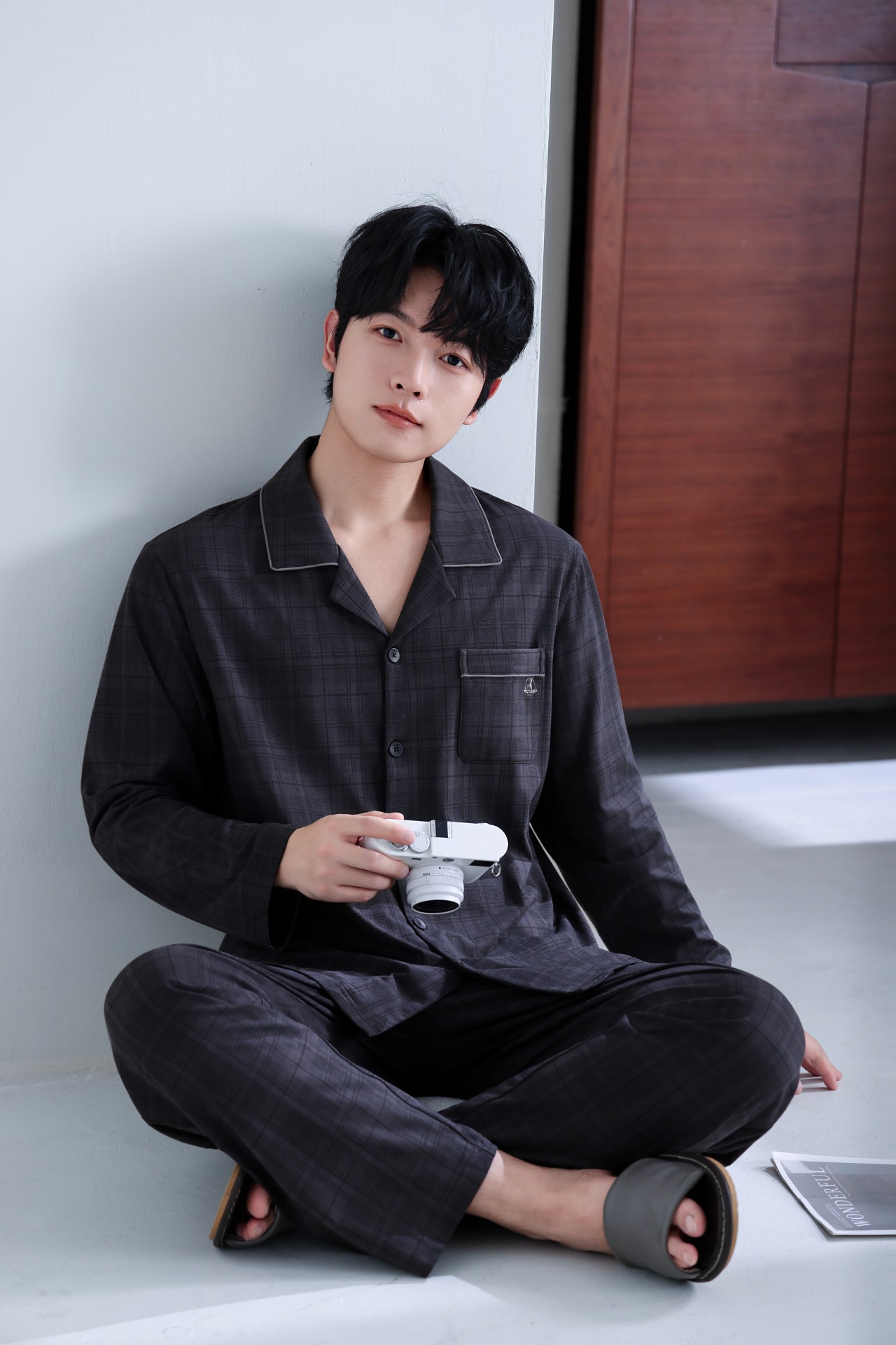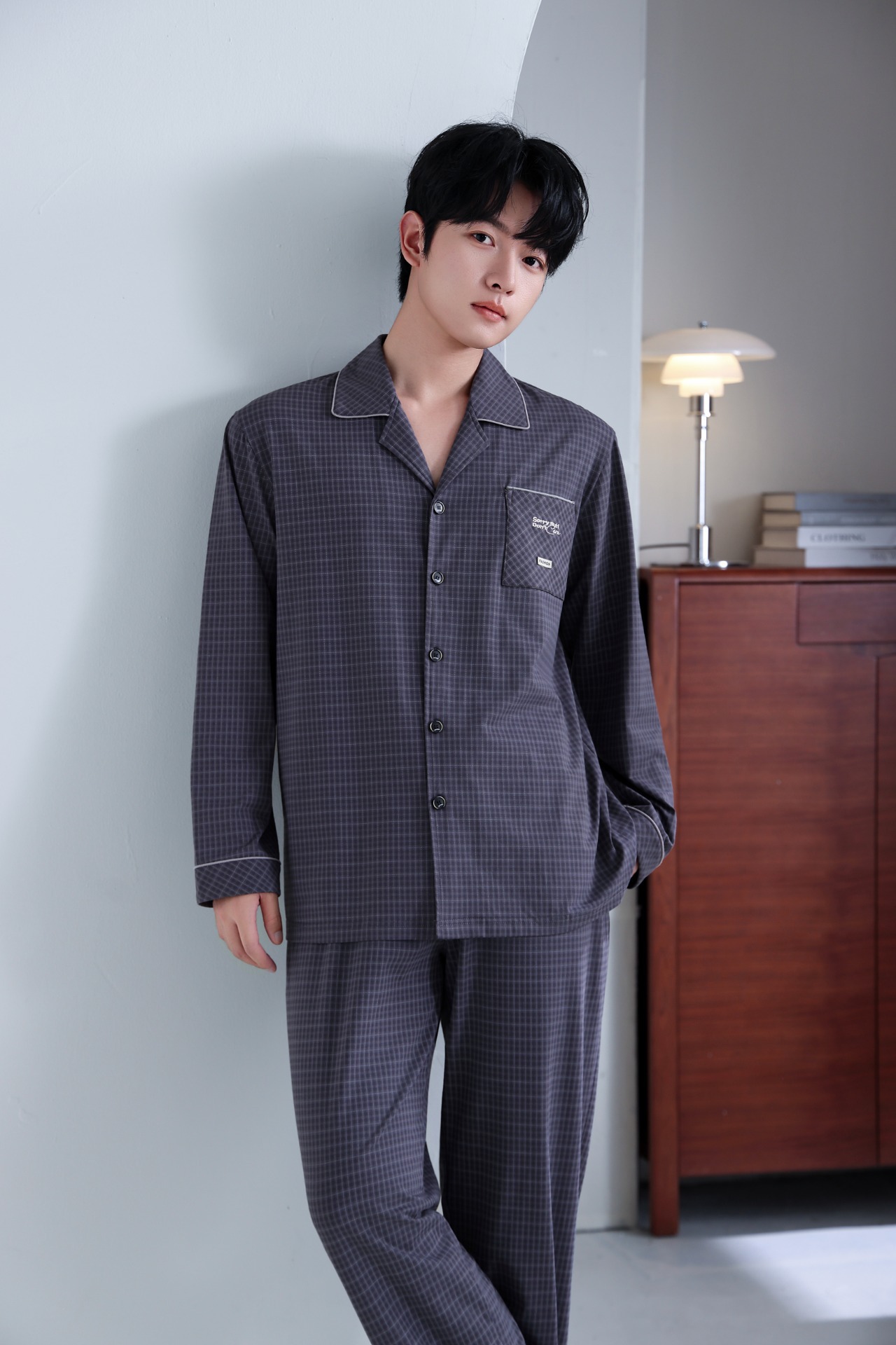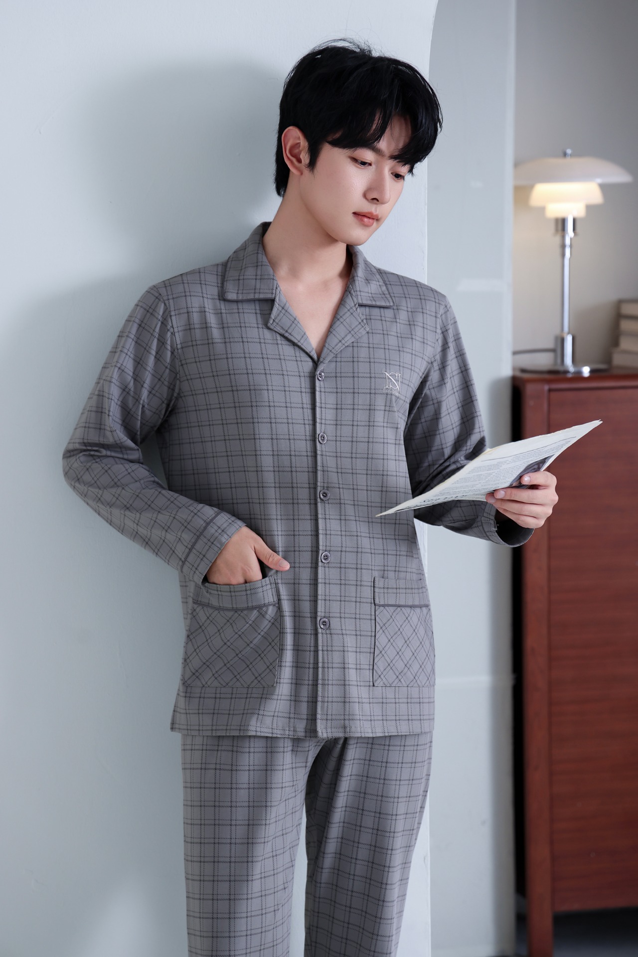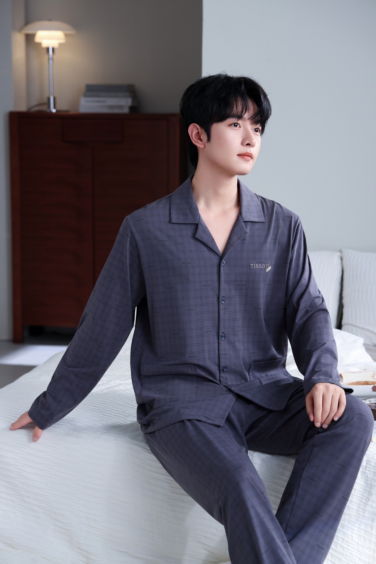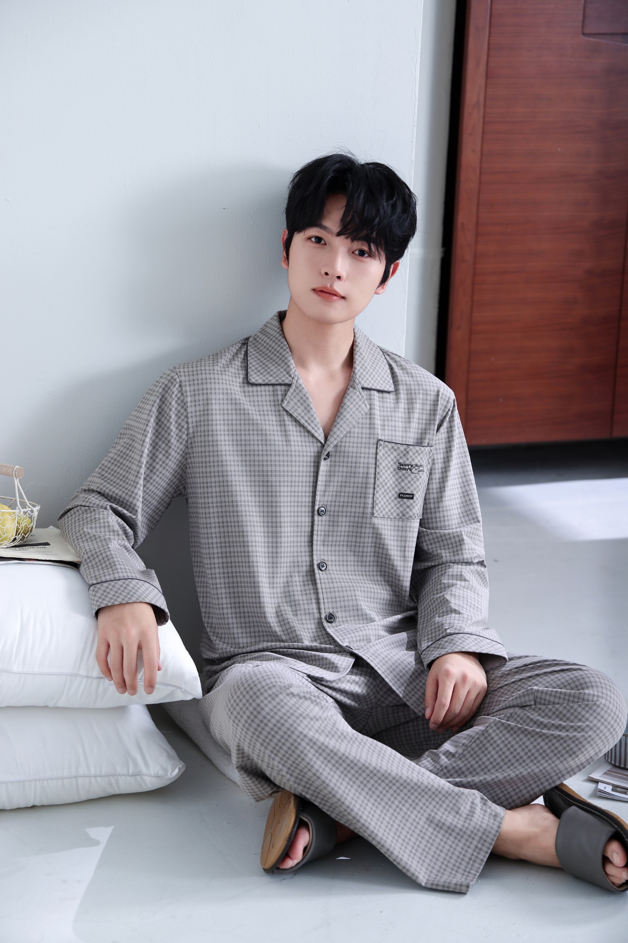 Главная страница > 2025 Zomeini новые мужские пижамы из синьцзянского хлопка с длинными рукавами и брюками, костюм с лацканами, можно носить на улице, удобная домашняя одежда