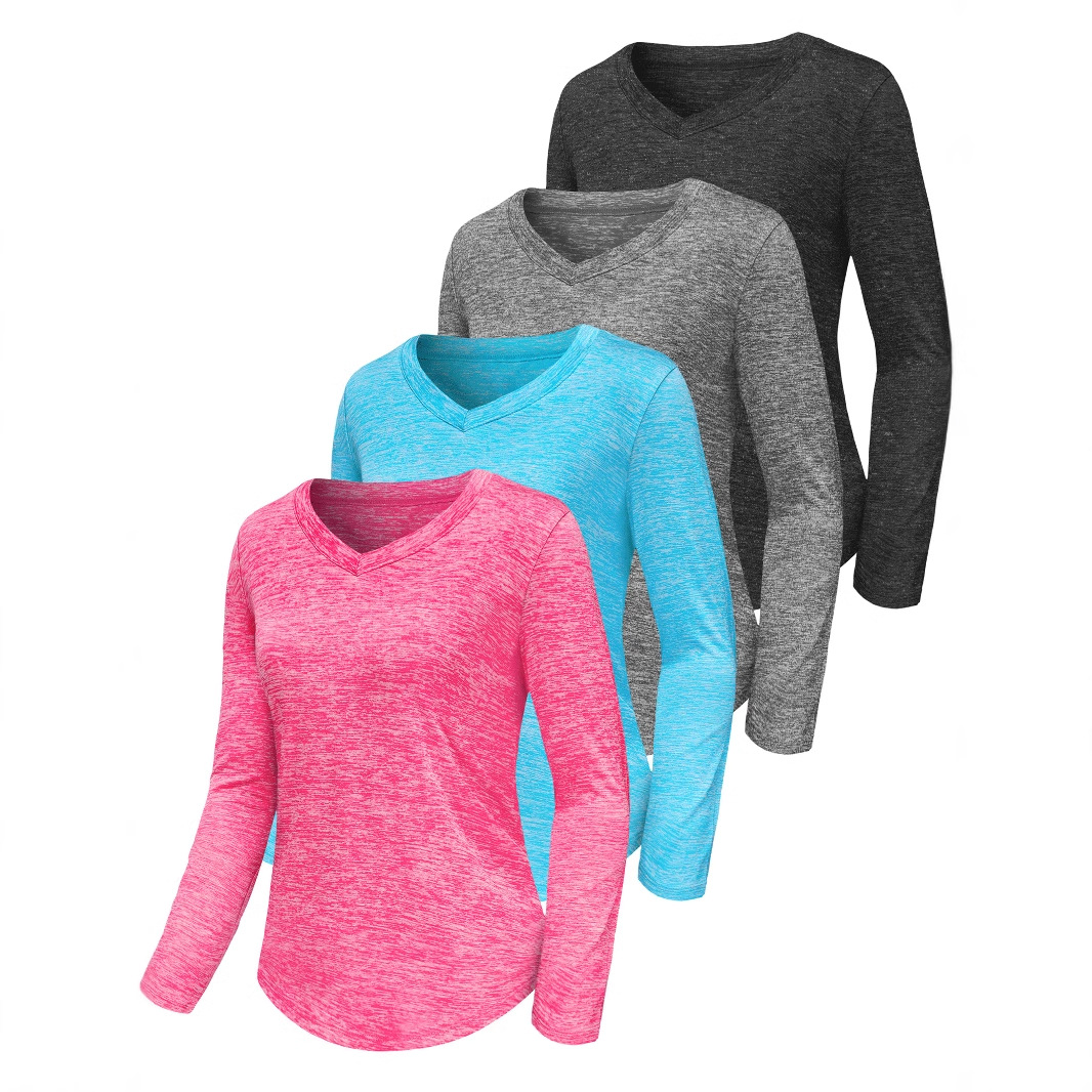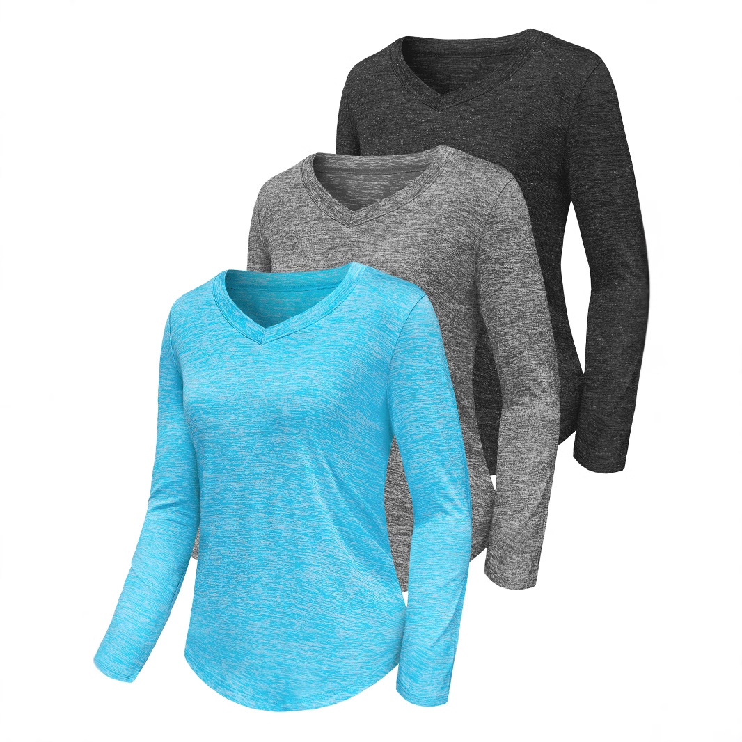 Главная страница > Амазонка трансграничный 3-5 шт. Женская рубашка с длинными рукавами фитнес-V-образный вырез легкий и быстро высушить свободную футболку спортивный топ