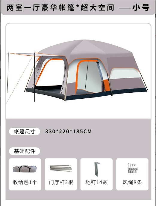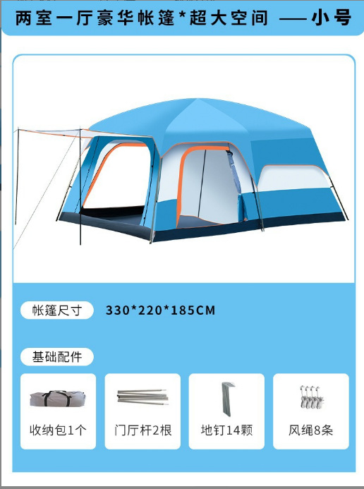 Оптовый производитель трансграничных товаров: двухкомнатный большой палаточный лагерь для кемпинга на открытом воздухе, вместимостью 6-8 или 8-12 человек, две спальни и один гостиный зал.