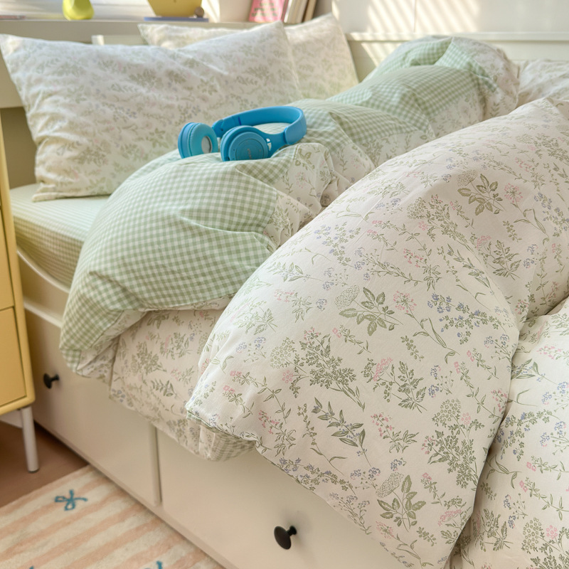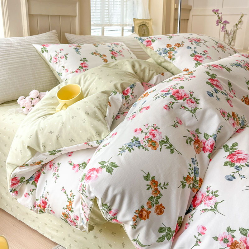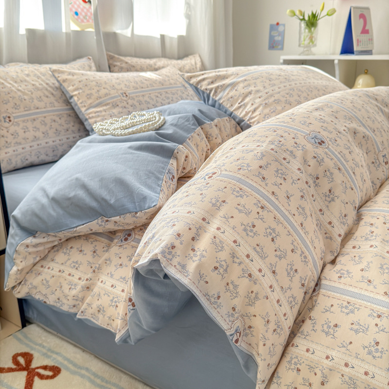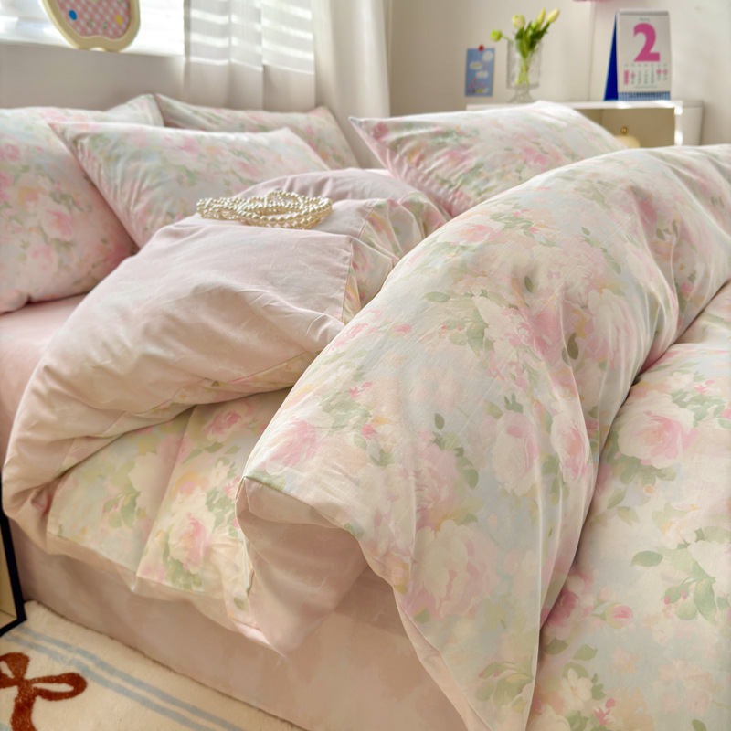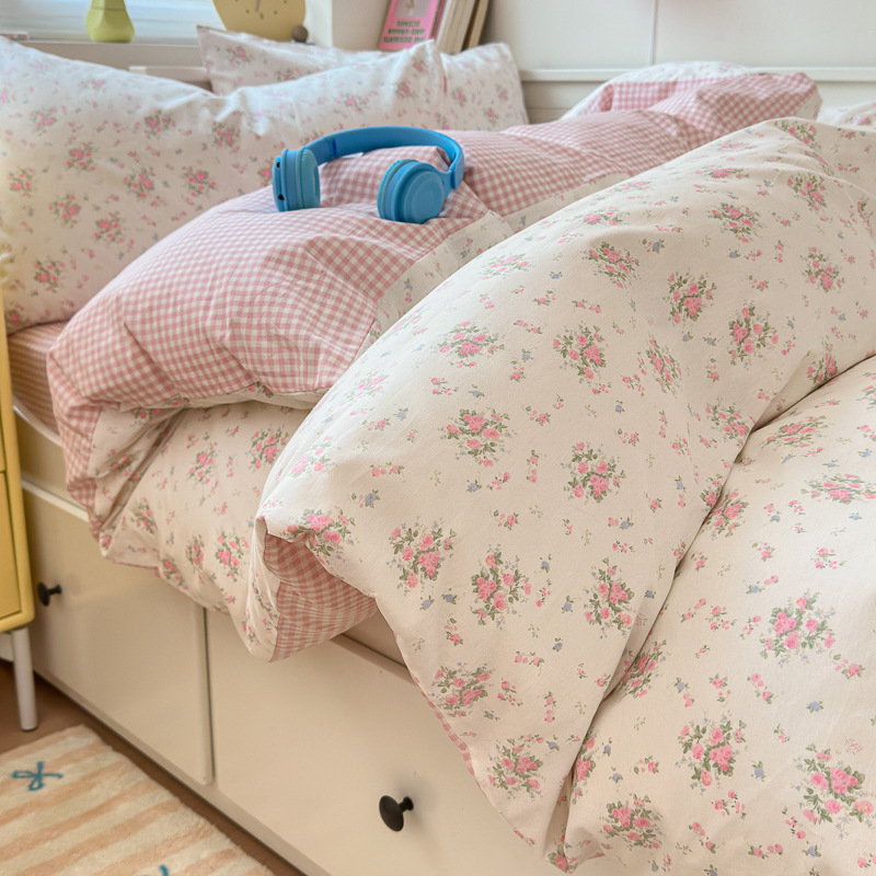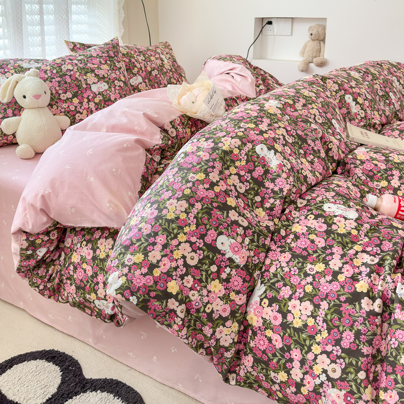 Главная страница > Весенний Новый 60 хлопковый комплект из четырех предметов, простая маленькая Цветочная хлопковая простыня, пододеяльник, постельное белье из трех предметов 4