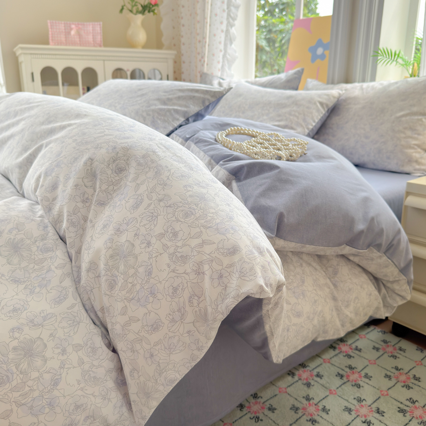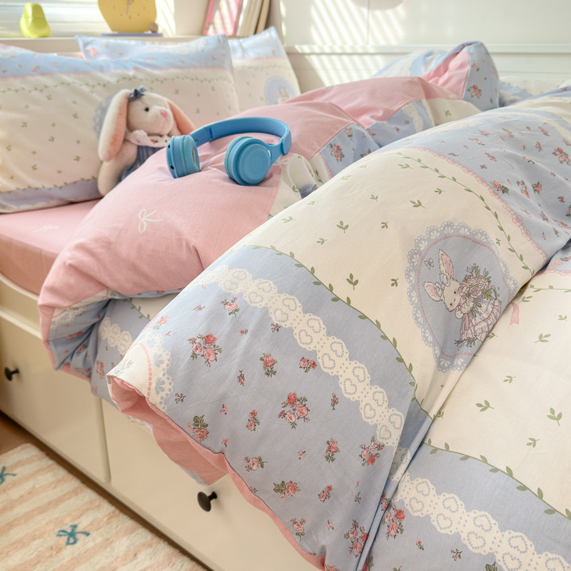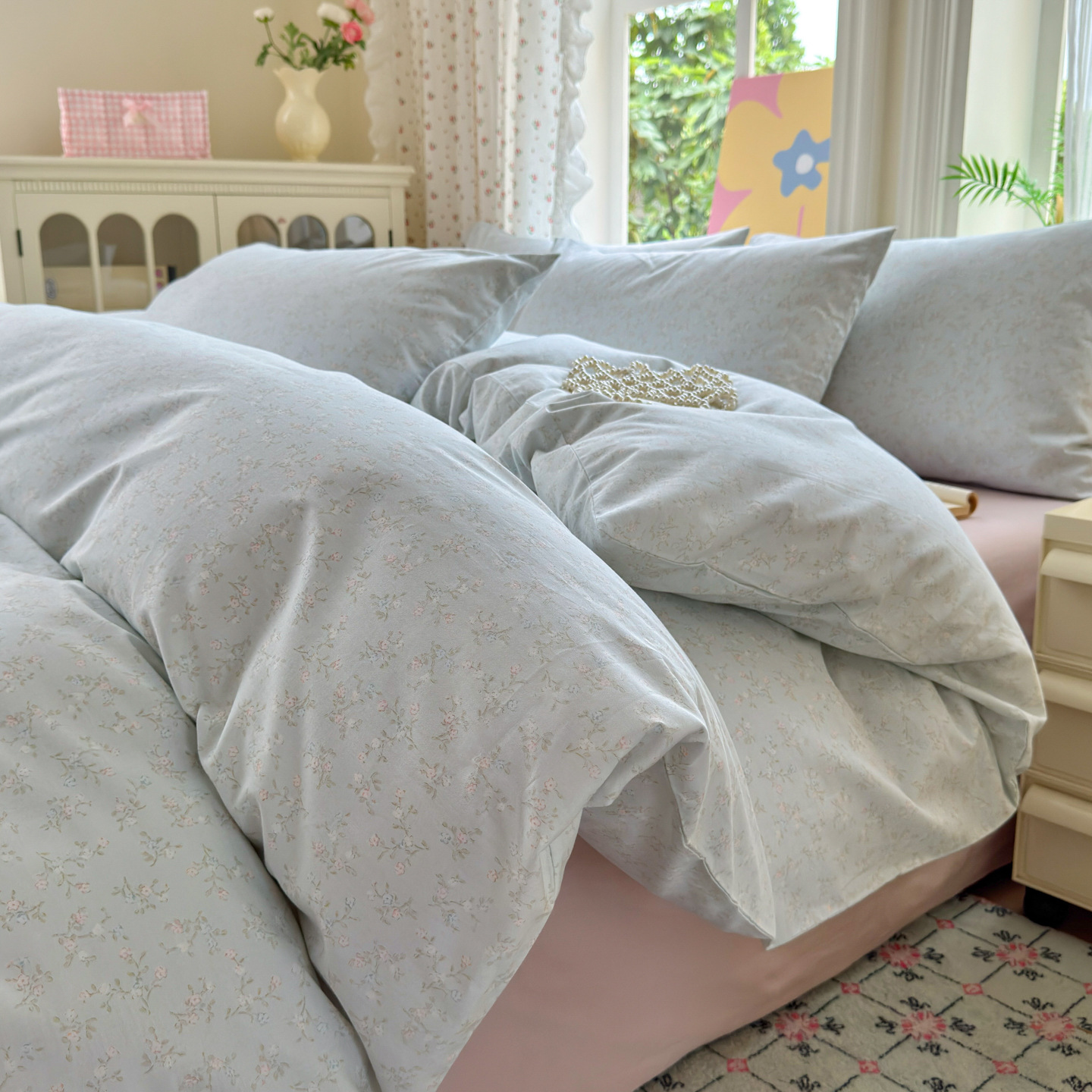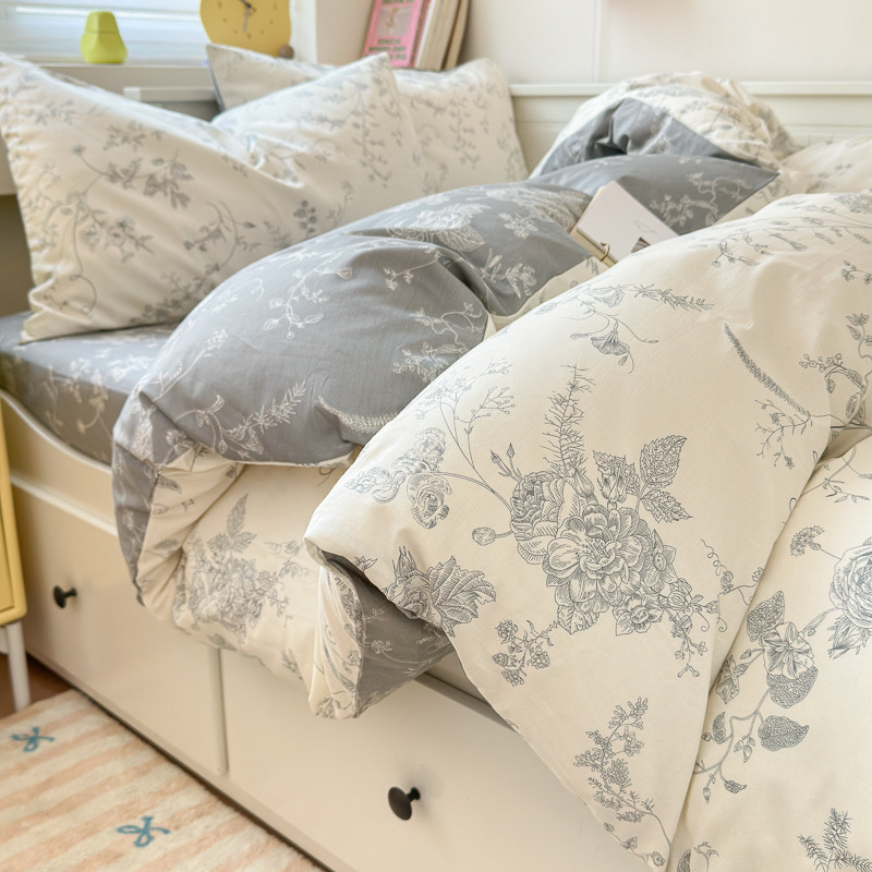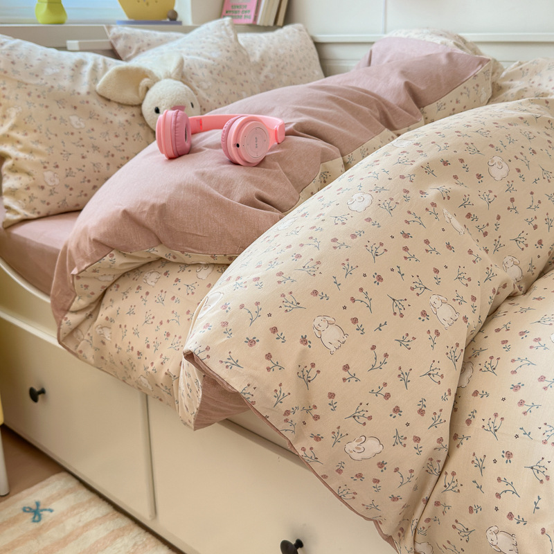 Главная страница > Весенний Новый 60 хлопковый комплект из четырех предметов, простая маленькая Цветочная хлопковая простыня, пододеяльник, постельное белье из трех предметов 4