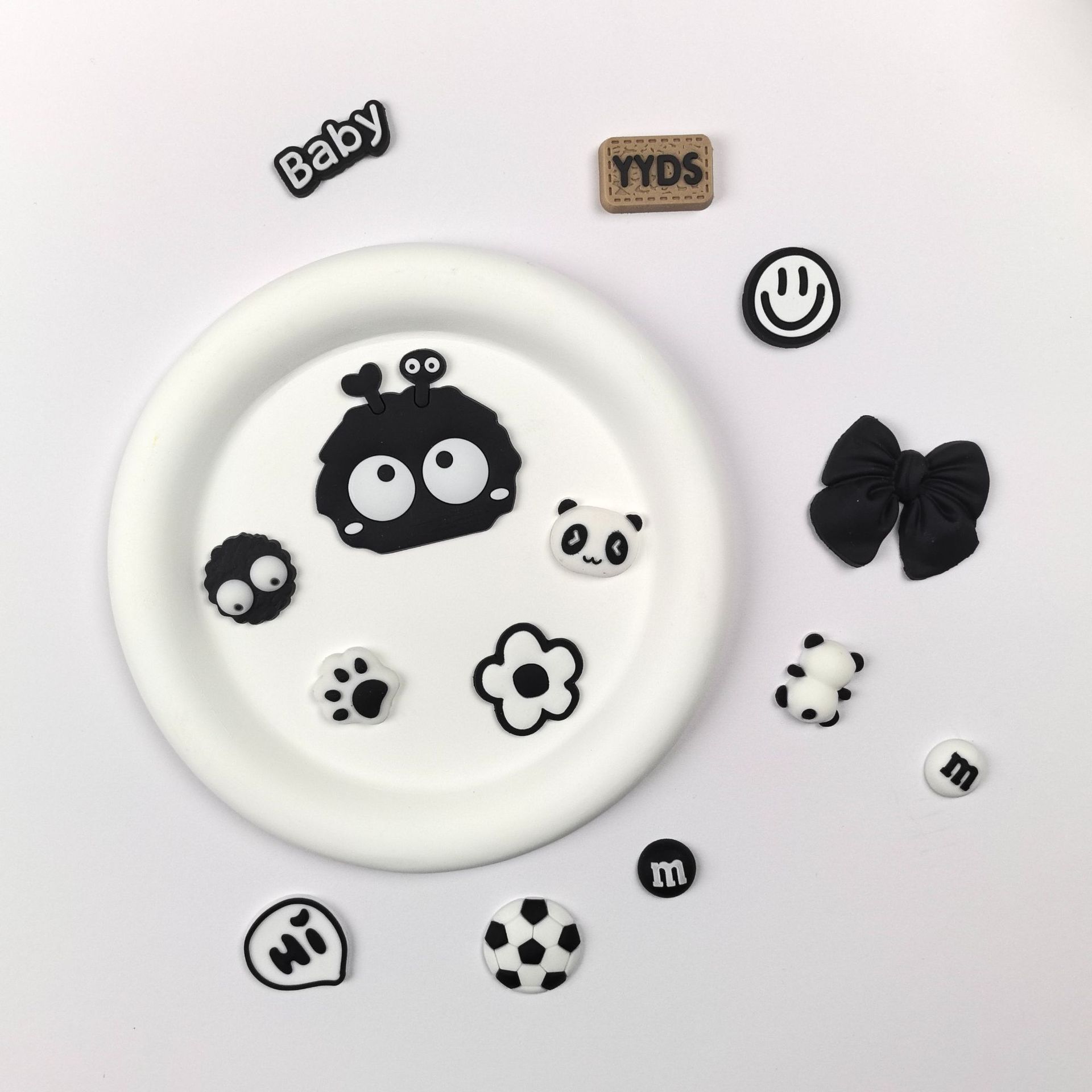 М бобы с черными символами на белом фоне (15x15 мм)
