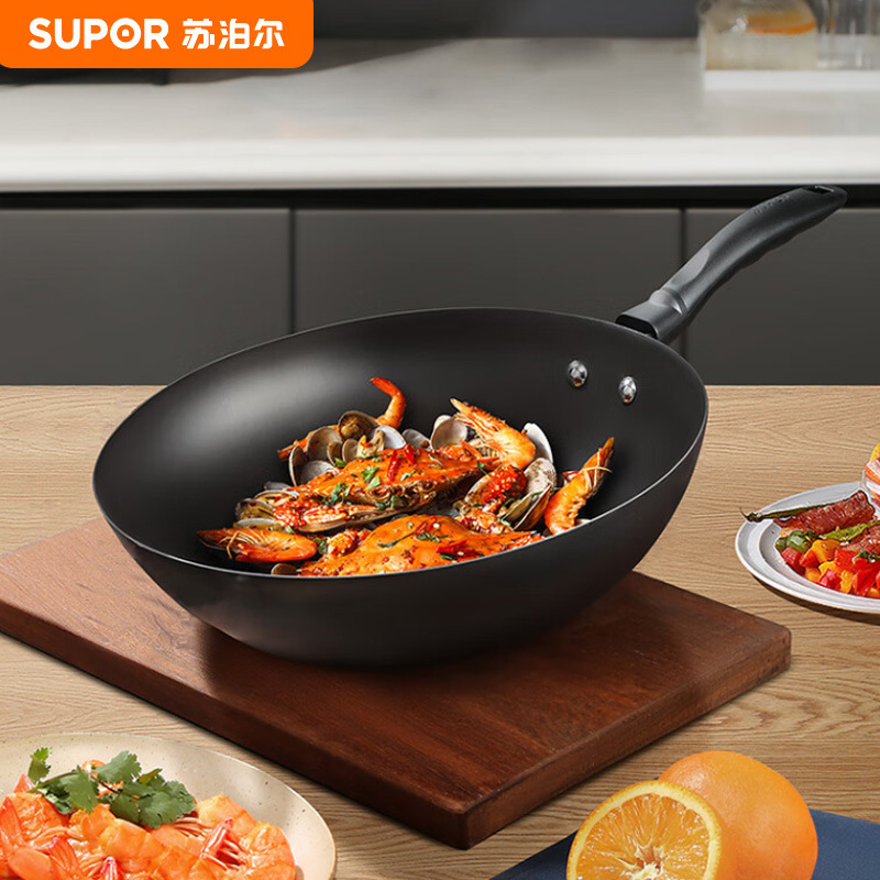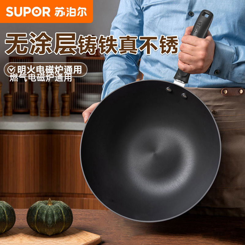 Главная страница > Железная кастрюля Supor, бытовой вок из нержавеющей стали без покрытия, старомодная сковорода вок, чугунная кастрюля, универсальная индукционная плита