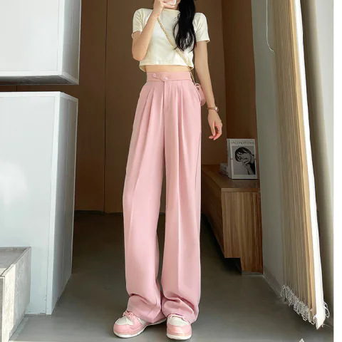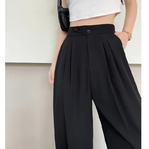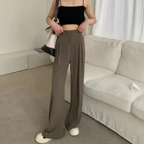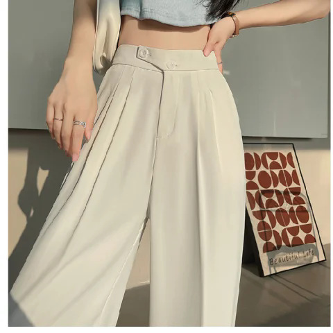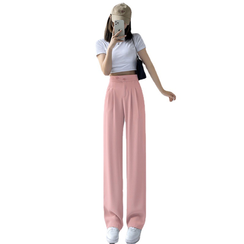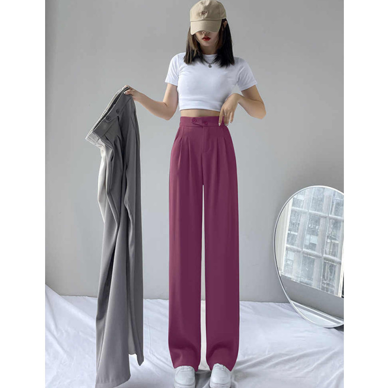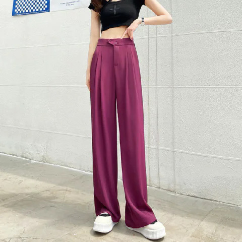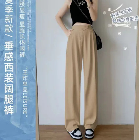 Главная страница > Лето 2022, тонкие шелковые брюки из ледяного шелка, широкие брюки, женские маленькие костюмные брюки с высокой талией, свободные повседневные прямые женские брюки