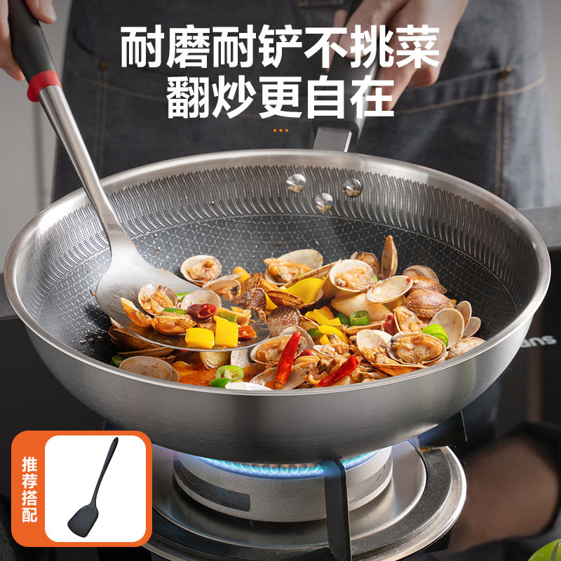Универсальная сковорода-вок из нержавеющей стали с антипригарным покрытием «соты» для индукционных и газовых плит, большая, для домашнего использования