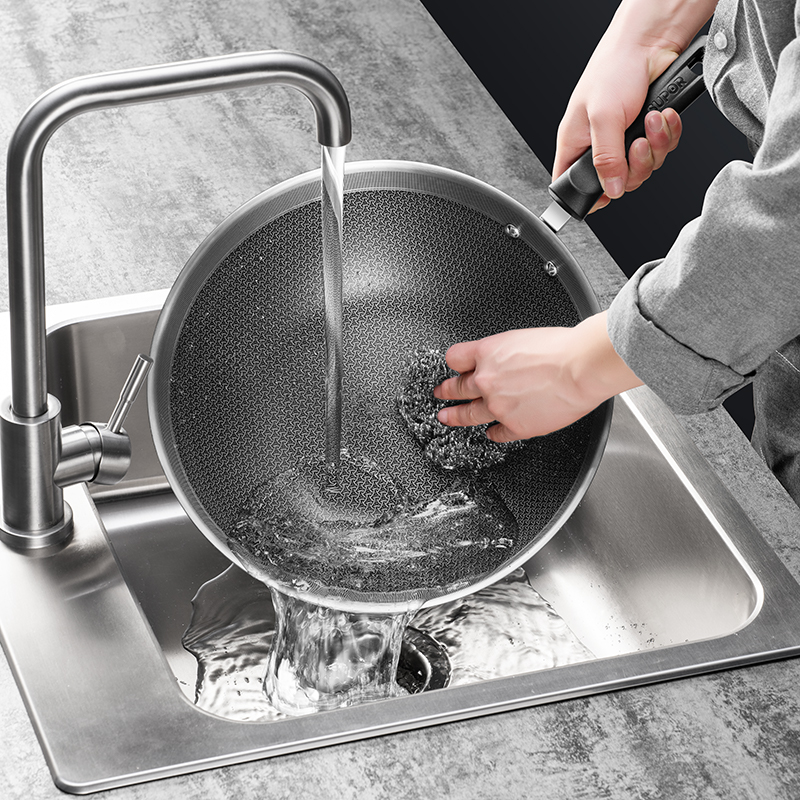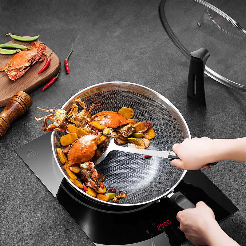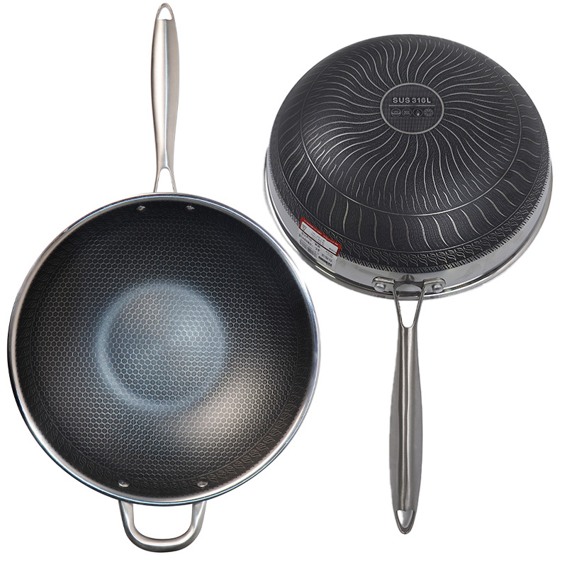 Главная страница > Универсальная сковорода-вок из нержавеющей стали с антипригарным покрытием «соты» для индукционных и газовых плит, большая, для домашнего использования