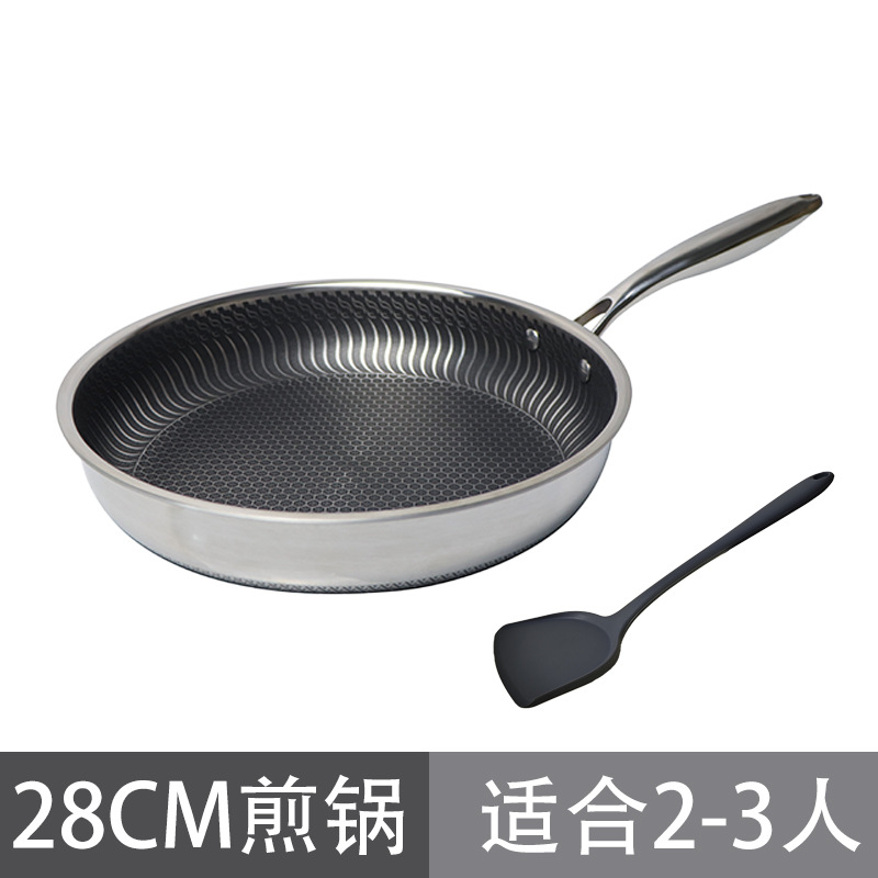 Флагманская модернизированная трехслойная стальная сковорода с двусторонним экраном [28 см], нержавеющая сталь 316 + силиконовая лопаточка