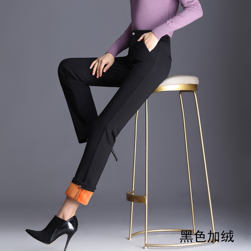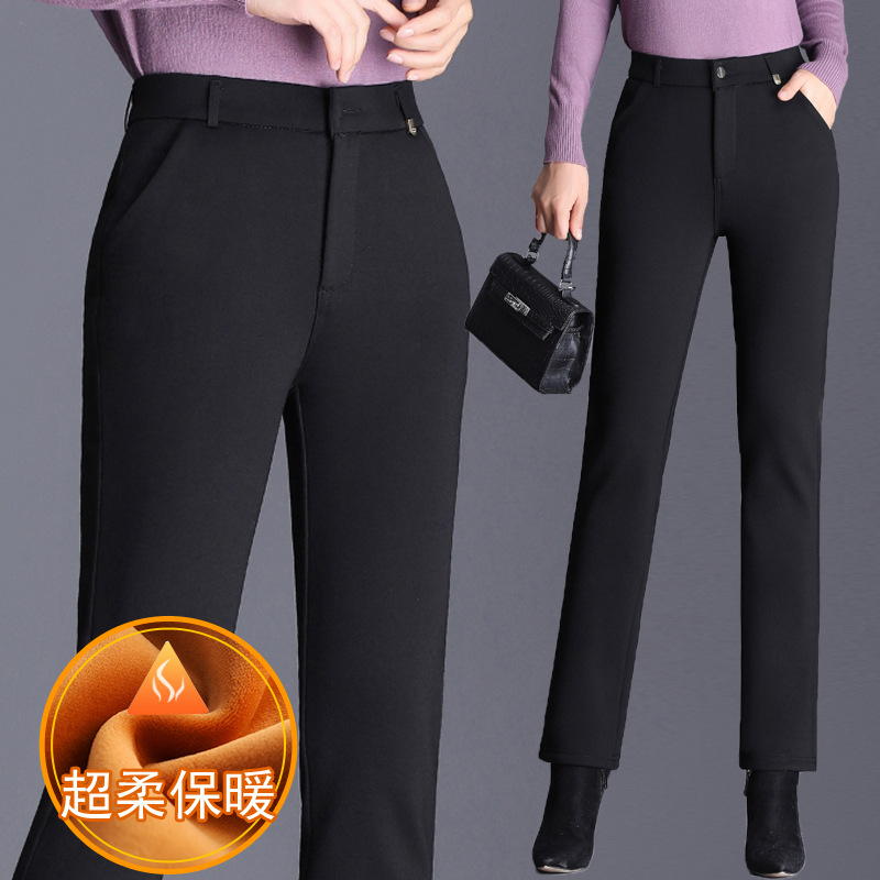 Весна Осень Зима Прямые брюки с высокой талией Свободные эластичные женские брюки Комбинезоны больших размеров Высокий приталенный костюм Брюки Бархатные