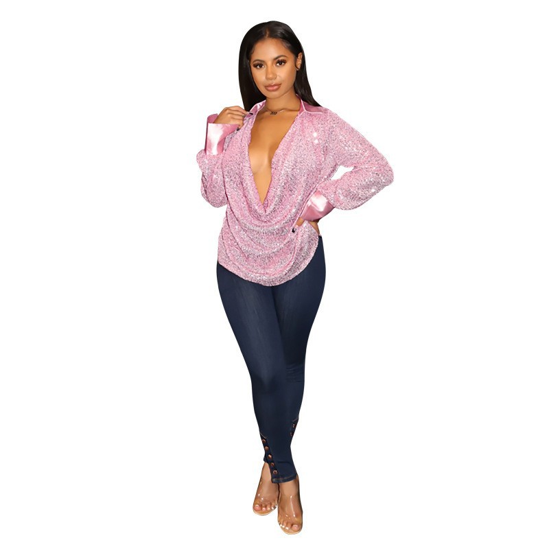 Главная страница > Оптовая продажа Amazon INS стиль блестками плиссированная рубашка Женщины желают независимой станции Свободная Повседневная Блузка с длинным рукавом для женщин