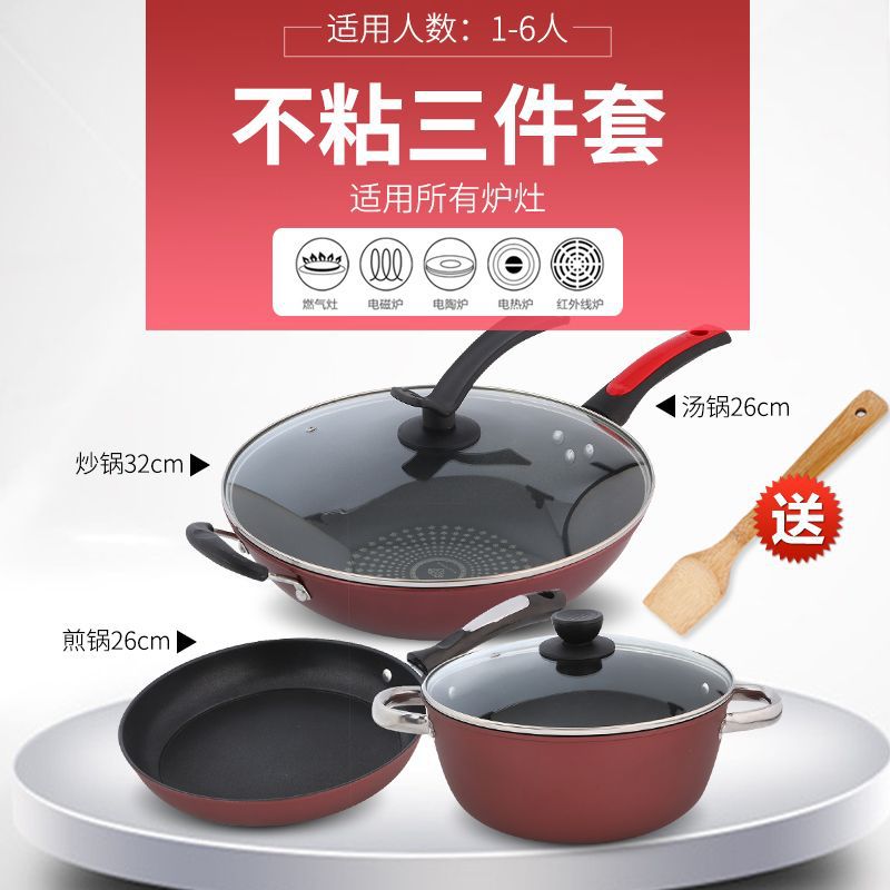 Бытовая кастрюля набор из трех частей Кухонная антипригарная кастрюля