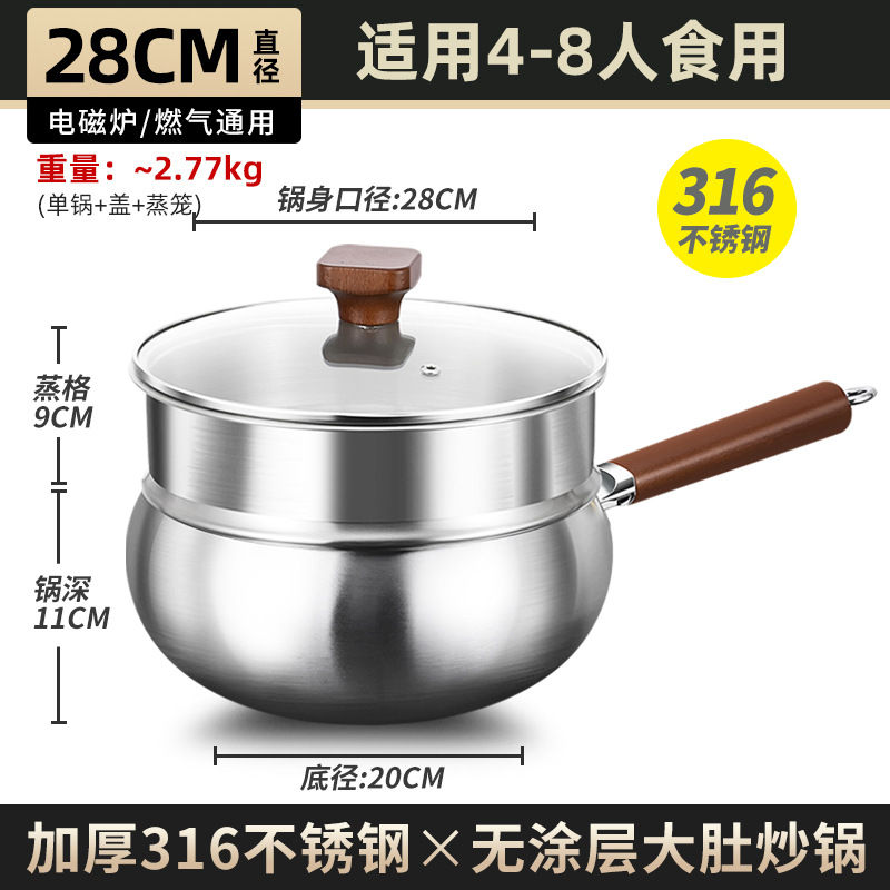 С пароваркой 28 см [утолщенная сталь 316, без покрытия]
