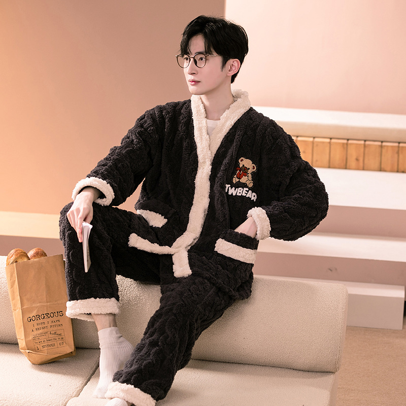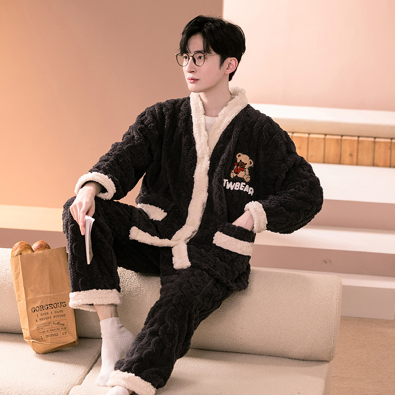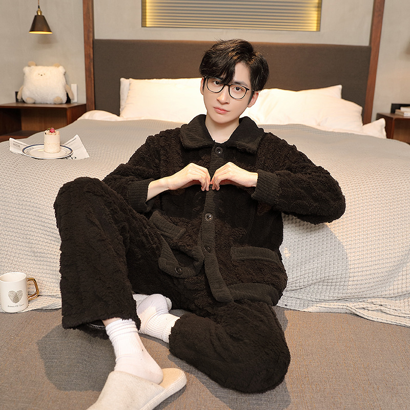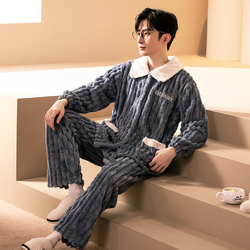 Главная страница > Пижама мужская из кораллового флиса осенне-зимний утолщенный фланелевый теплый костюм с флисовой подкладкой, домашняя одежда больших размеров для подростков