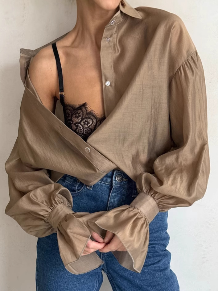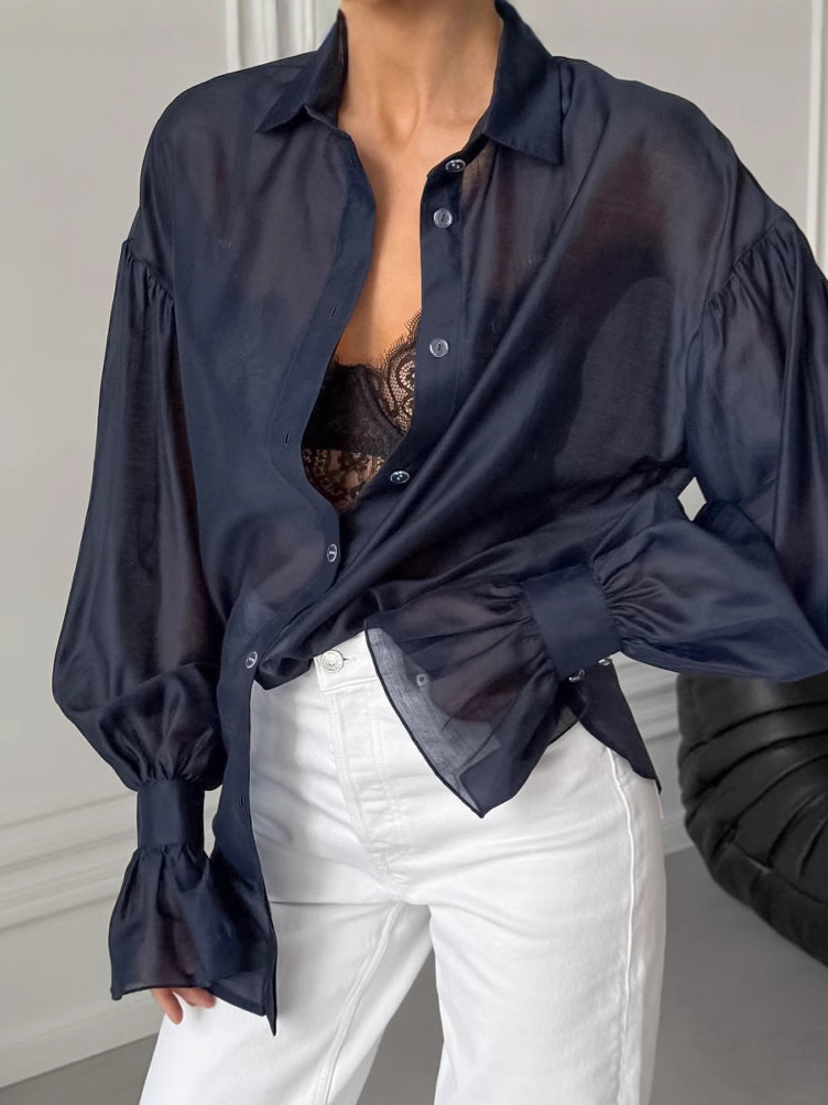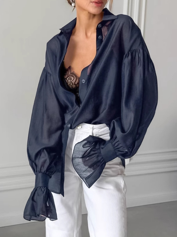 Главная страница > 2025 новая осенняя прозрачная рубашка с длинными рукавами, женская дизайнерская стильная модная элегантная повседневная европейская и американская рубашка для поездок на работу