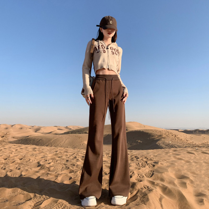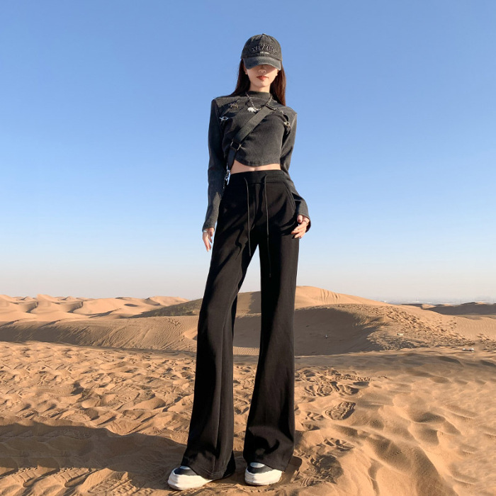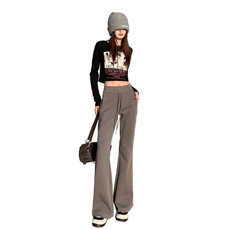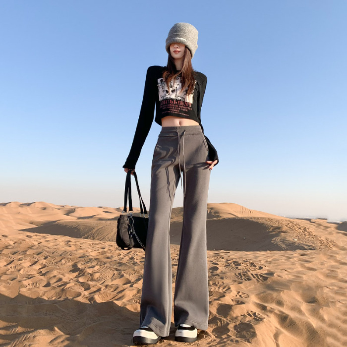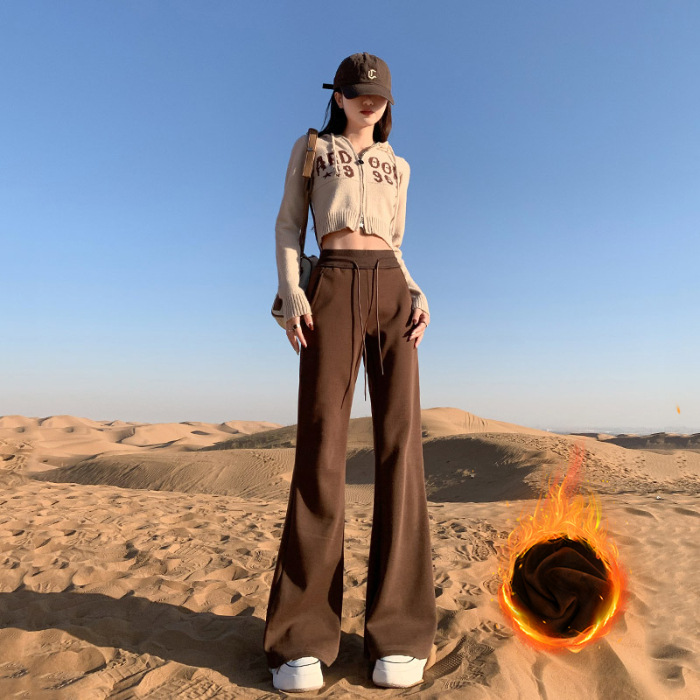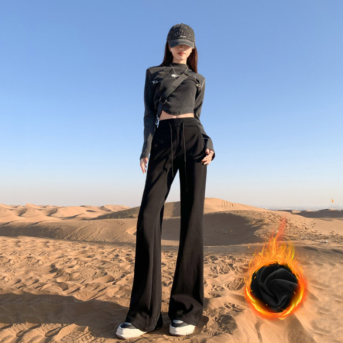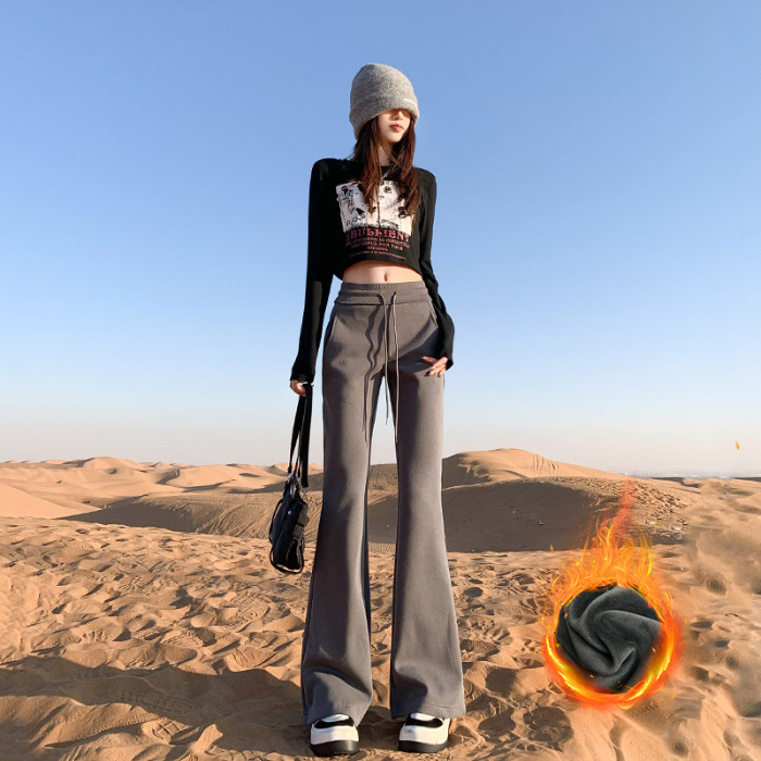 Главная страница > Женские брюки Minghai 2025: Новинка осенне-зимней коллекции, флисовые, с высокой талией, в американском стиле, зауженные, расклешенные, повседневные спортивные брюки для похудения