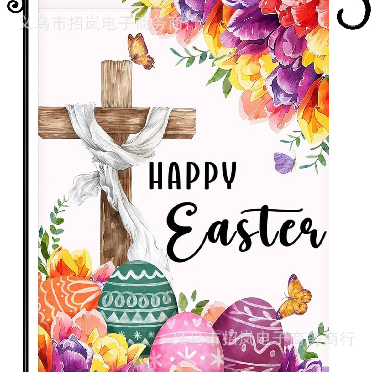 TEMU Горячая продажа крест пасхальное яйцо двухсторонний садовый флаг на открытом воздухе фермерский дом праздник двор газон украшения