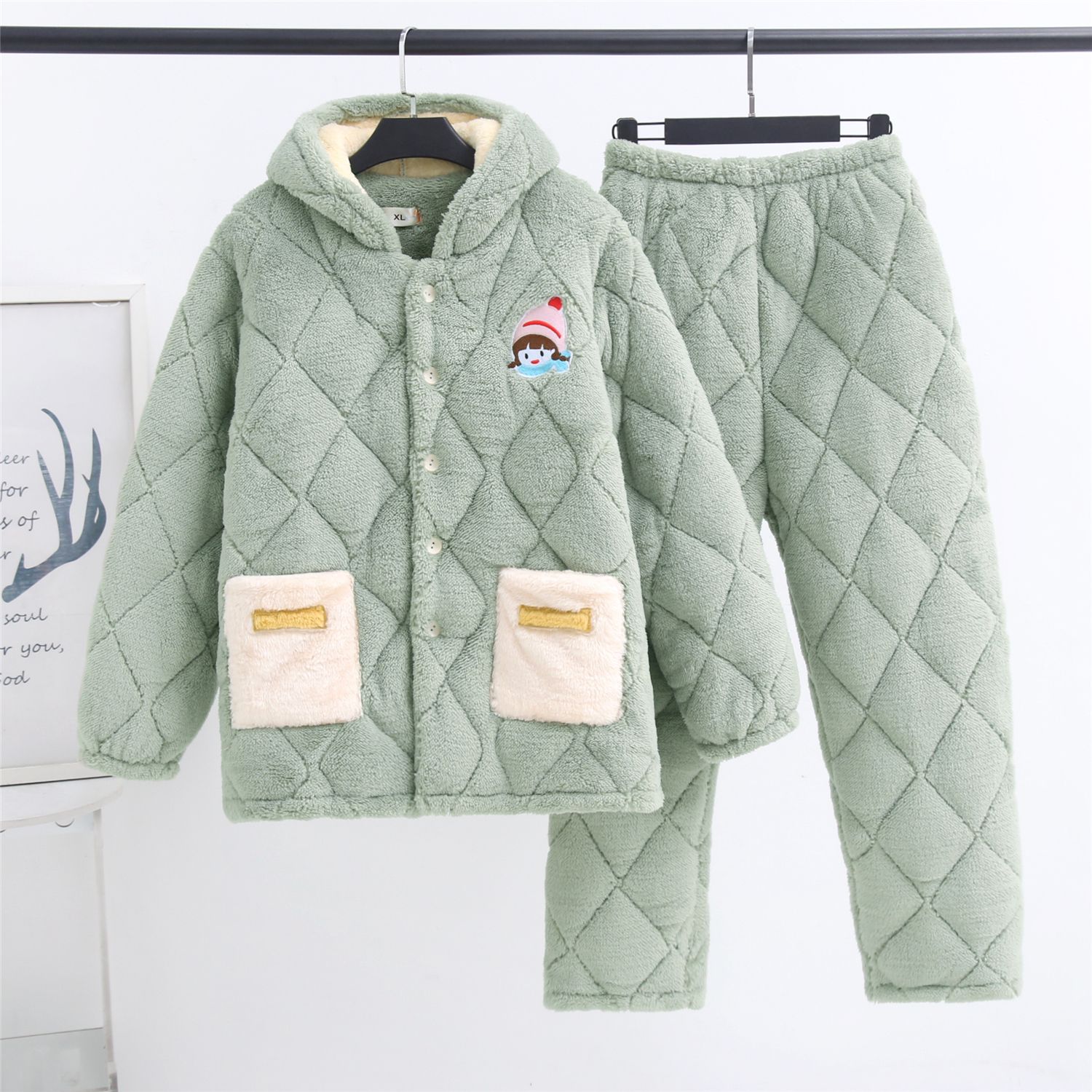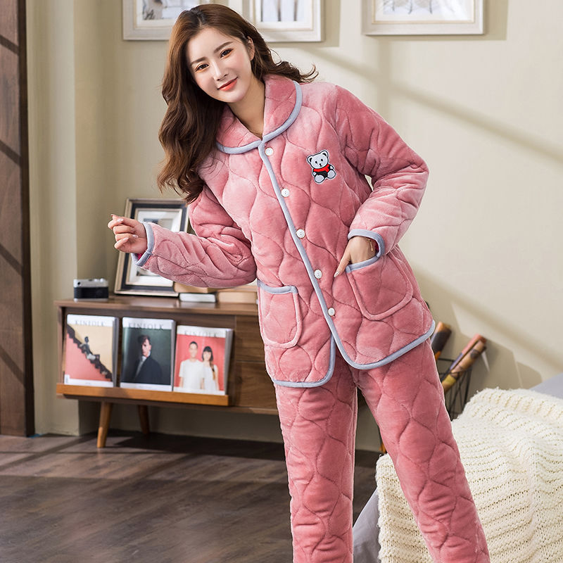 Пижама женский трехслойный толстый ватный пижама женский коралловый фланель тепло осенью и зимой можно носить домашнюю одежду