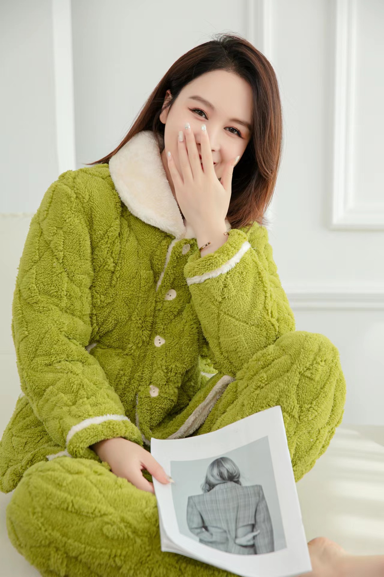 Главная страница > Пижама женский трехслойный толстый ватный пижама женский коралловый фланель тепло осенью и зимой можно носить домашнюю одежду