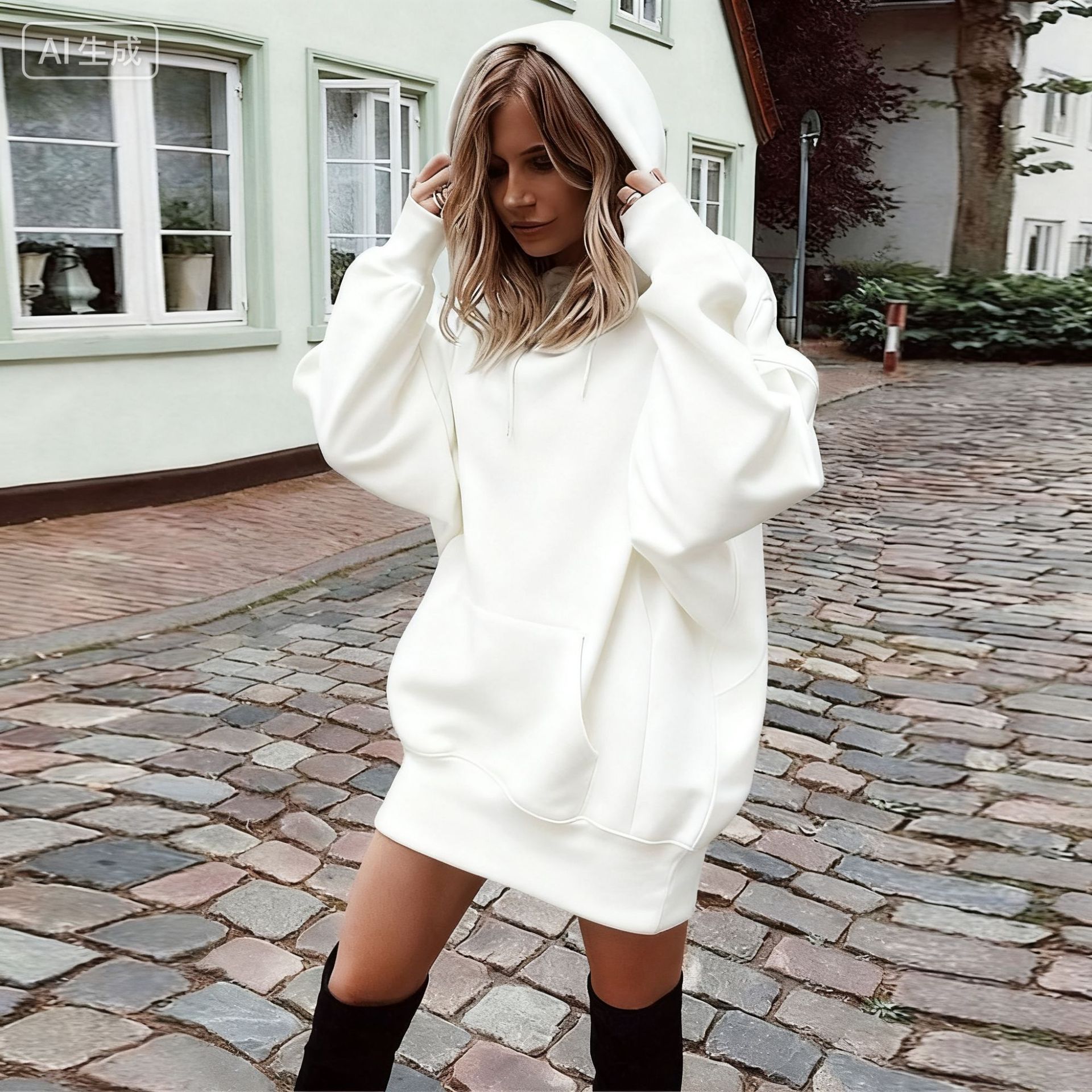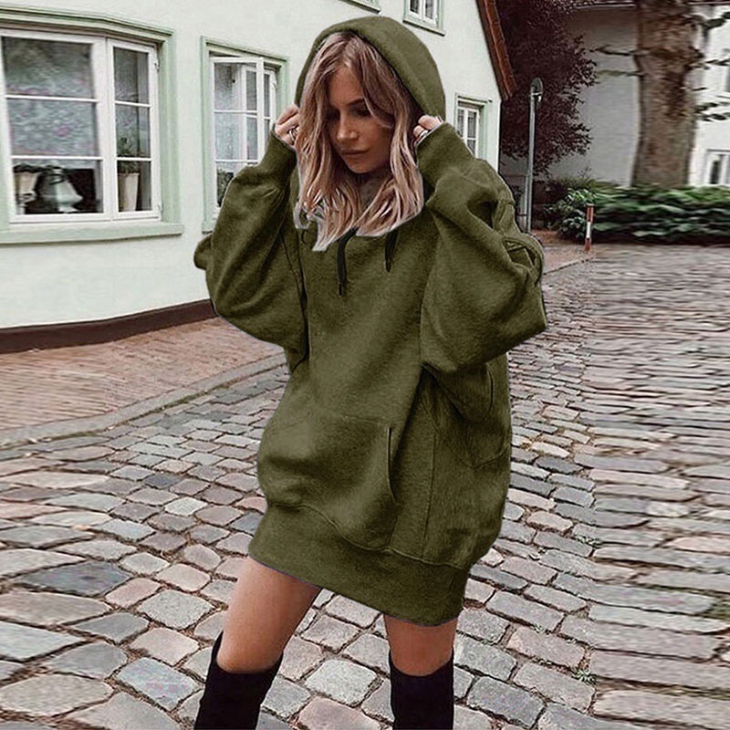 Главная страница > 2025 Amazon Интернет-знаменитости, европейская и американская осенне-зимняя модная женская однотонная пуловер с капюшоном, свободная флисовая толстовка