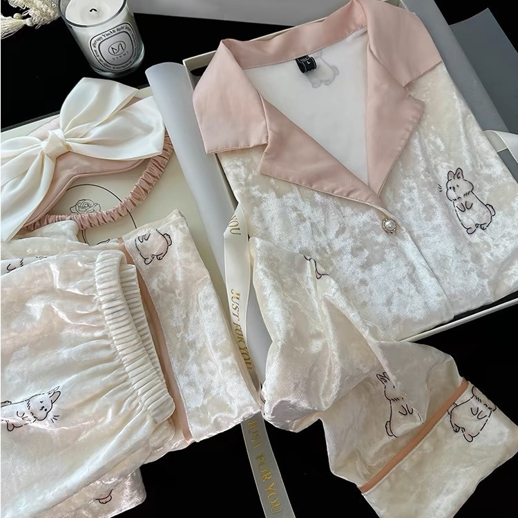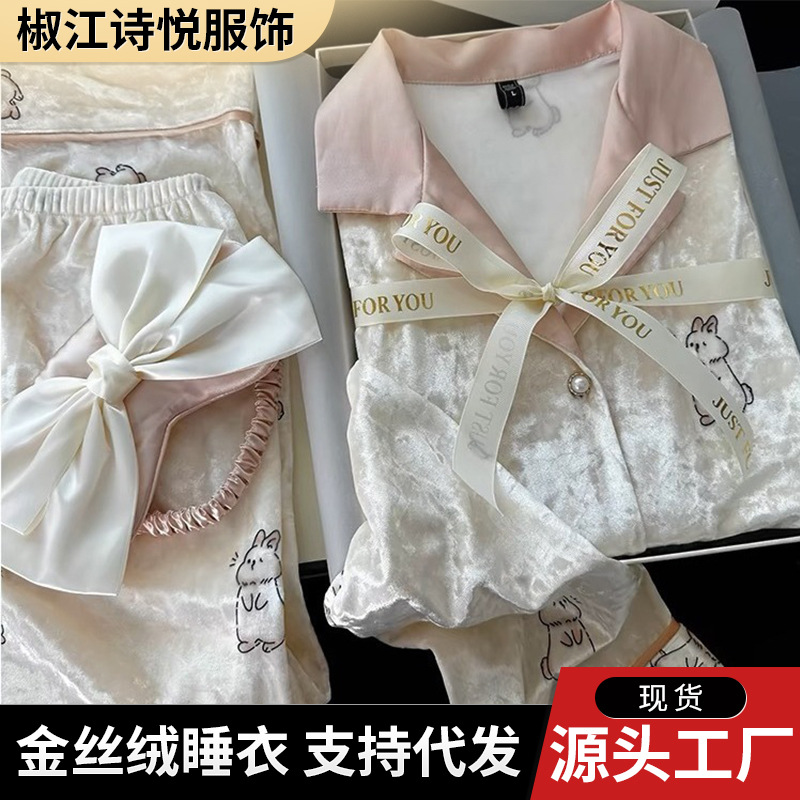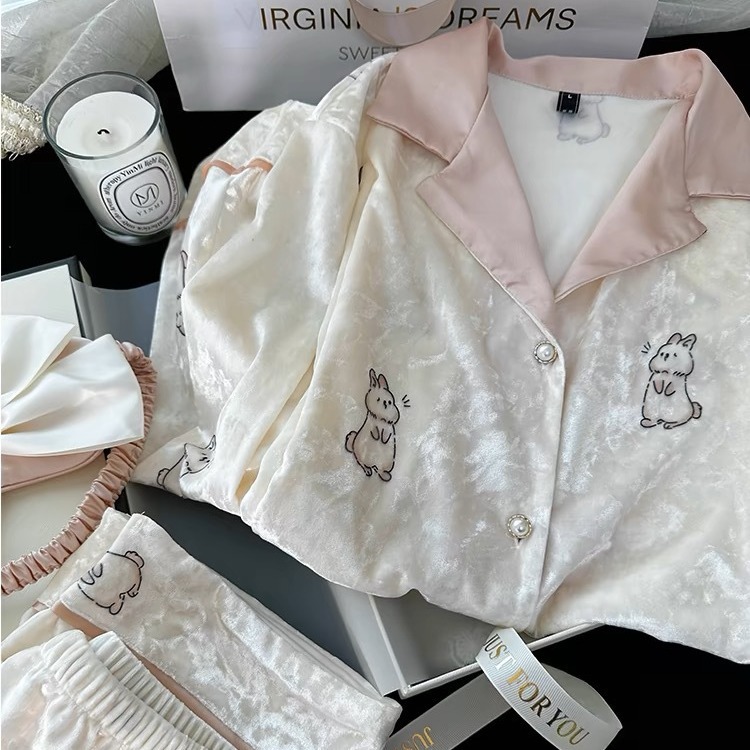 Главная страница > Комплект женской домашней одежды YD: пижама из вельвета с принтом кролика, весна-осень, с длинным рукавом и длинными брюками, тонкий, молодежный, роскошный стиль