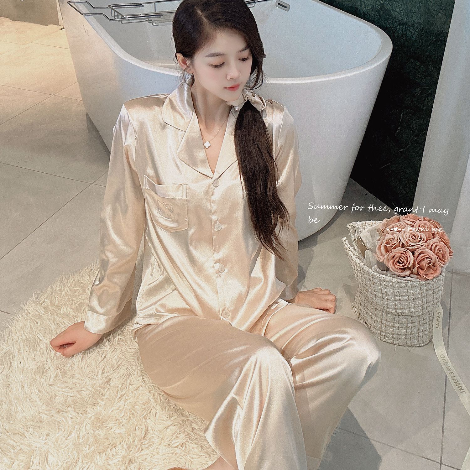 Главная страница > Золотая Кэти Корейская версия горячего бриллианта высокого уровня ледяной шелк пижамы женская одежда с длинными рукавами весенняя осенняя сеть красная атласная домашняя одежда женщина