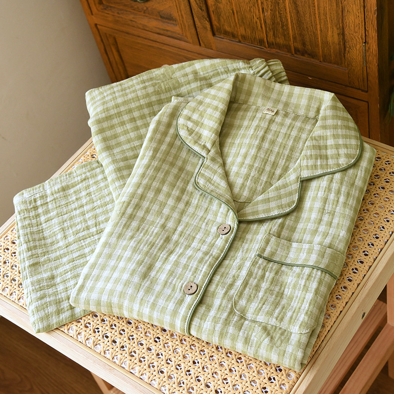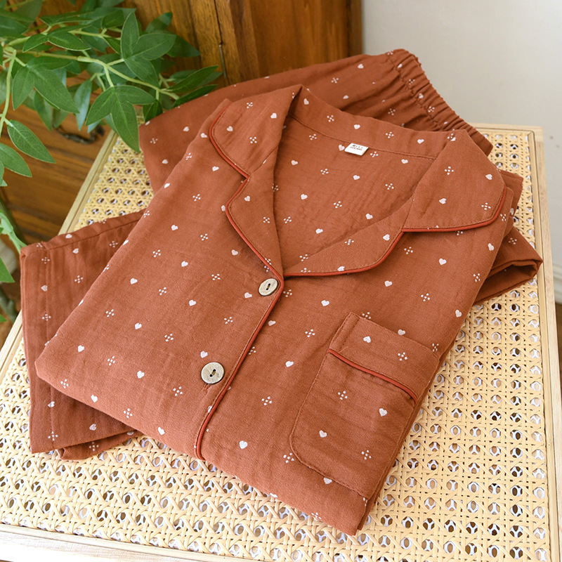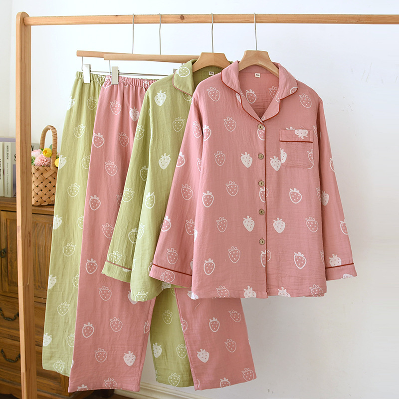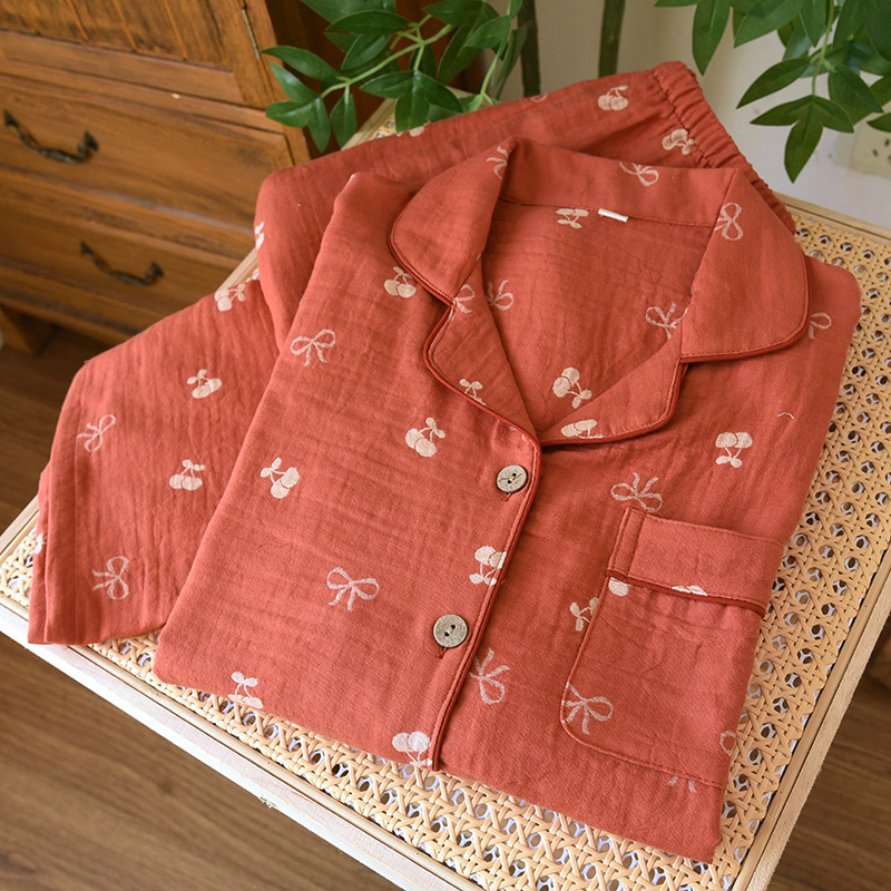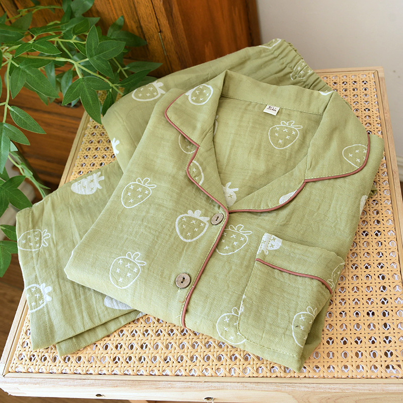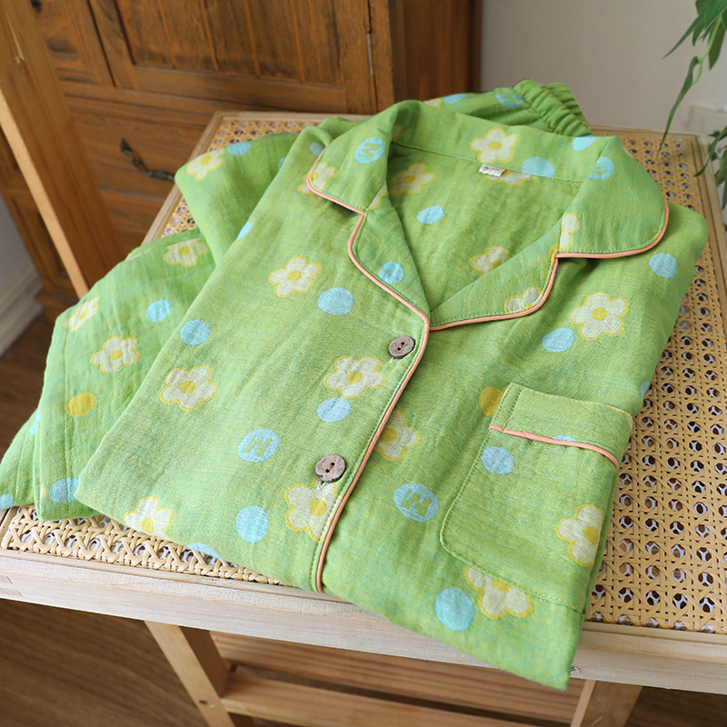 Хлопок большой жаккард двухслойная пряжа женская домашняя одежда пижама с длинными рукавами брюки костюм цвета трикотажный отливок можно носить в любое время года