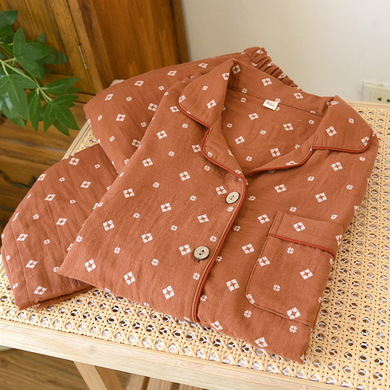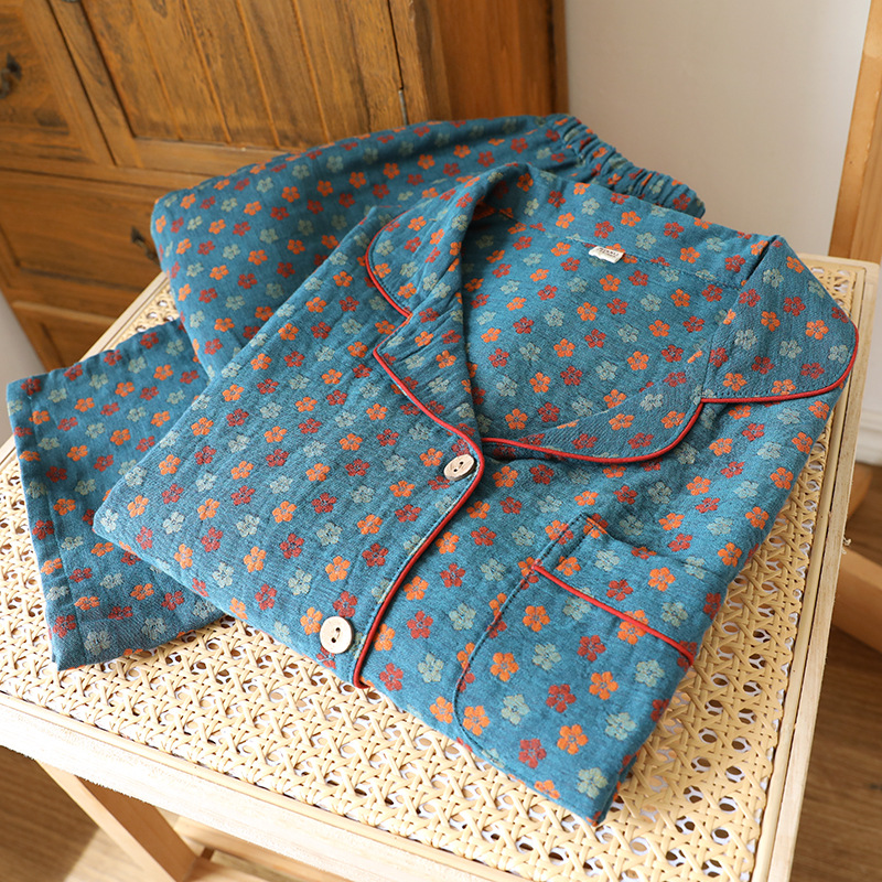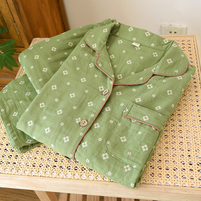 Главная страница > Хлопок большой жаккард двухслойная пряжа женская домашняя одежда пижама с длинными рукавами брюки костюм цвета трикотажный отливок можно носить в любое время года