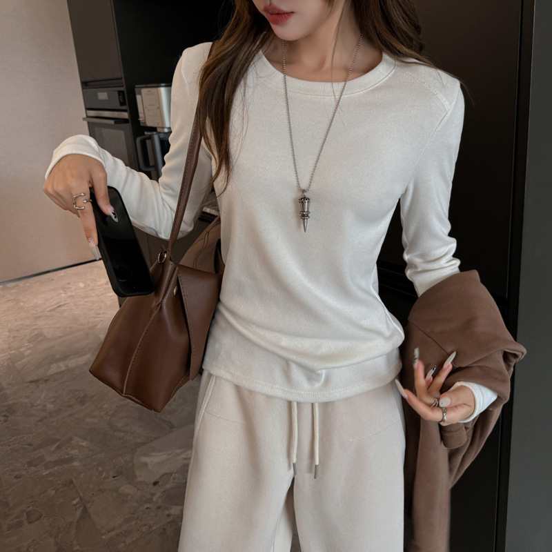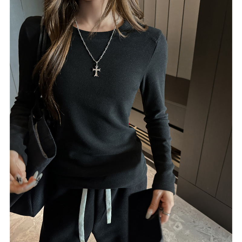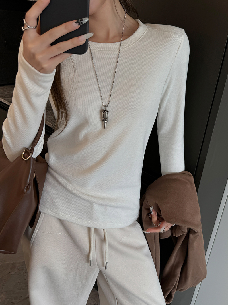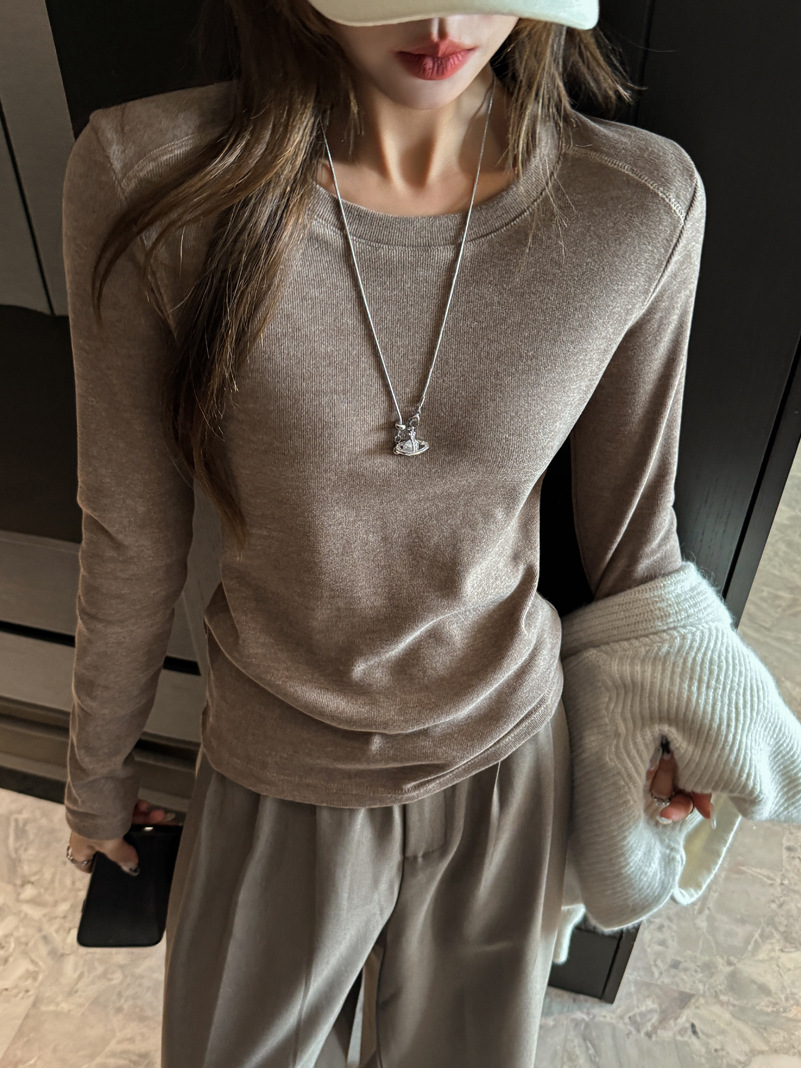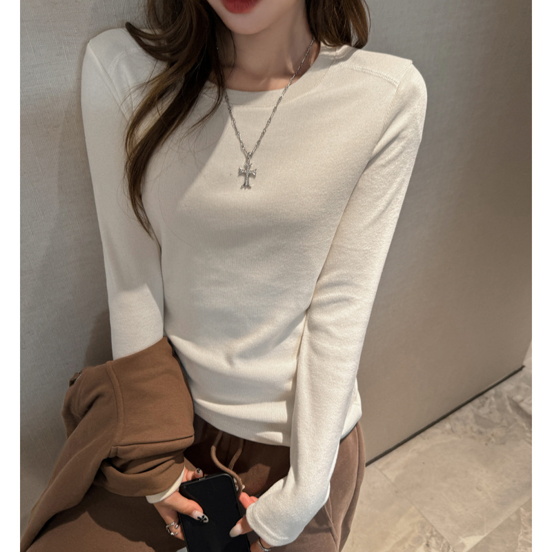 Главная страница > Маленькая высококачественная утолщенная рубашка с длинными рукавами и круглым вырезом для женщин, осенне-зимние высококачественные футболки с длинными рукавами.