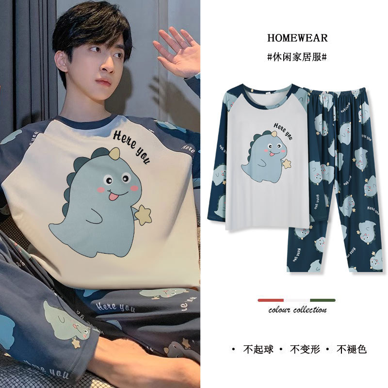Главная страница > Весенне-осенние мужские пижамы, новинка 2025 года, молодежная домашняя одежда из искусственного хлопка с длинными рукавами, костюм-двойка большого размера с круглым вырезом