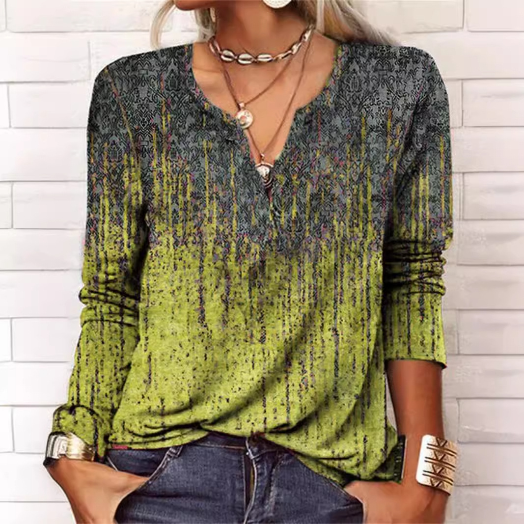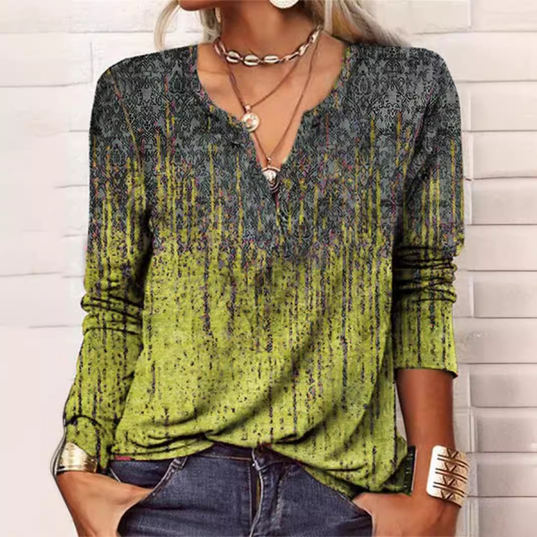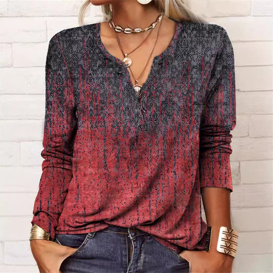 Amazon AliExpress желает Европе и США трансграничного 2022 осень и зима свободная футболка с длинным рукавом и цветком Mang с V-образным вырезом Базовая рубашка женская