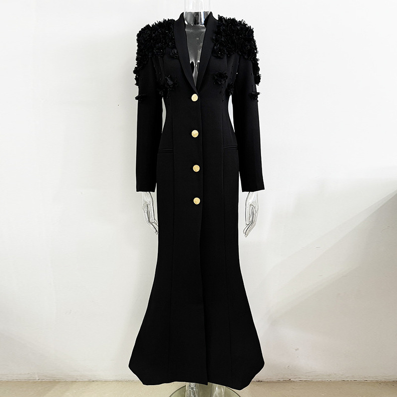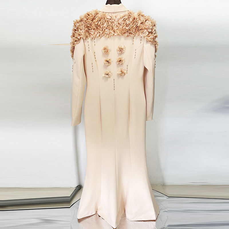 Главная страница > Пятно 2025 новая европейская и американская звезда моды тяжелая промышленная гвоздь бусы трехмерный цветок зеленый фруктовый воротник платье платье платье длинное платье