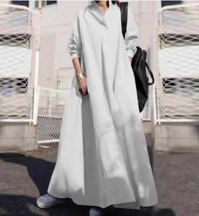 Японская свободная юбка большого размера пухлый мм рубашка 2024 весна и лето воротник POLO с длинными рукавами платье на буксире