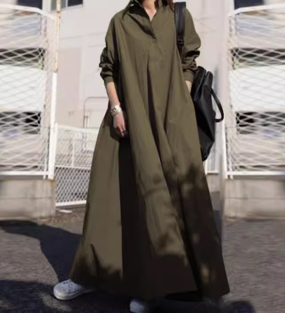 Главная страница > Японская свободная юбка большого размера пухлый мм рубашка 2024 весна и лето воротник POLO с длинными рукавами платье на буксире