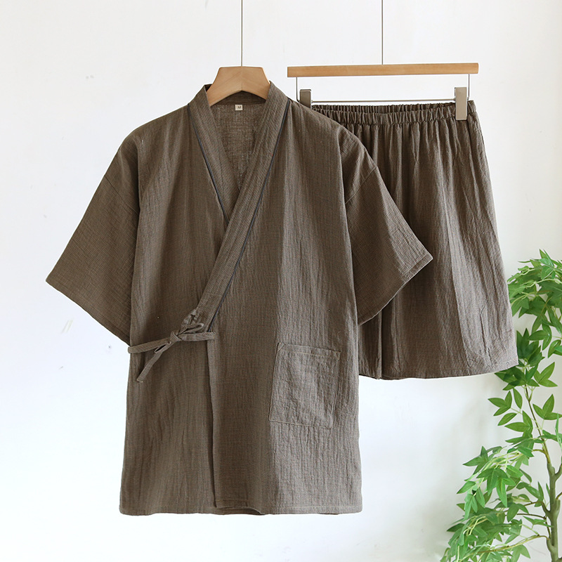 Главная страница > Японские весенне-летние однотонные пижамы-кимоно, мужские тонкие шорты из чистого хлопка с короткими рукавами, комплект домашней одежды большого размера